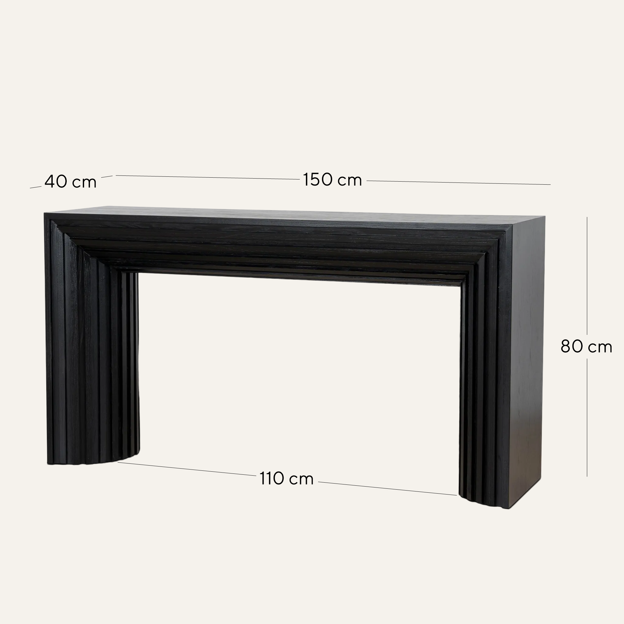 Overall: 150cm (W) x 40cm (D) x 80cm (H) Distance between Legs: 110cm
