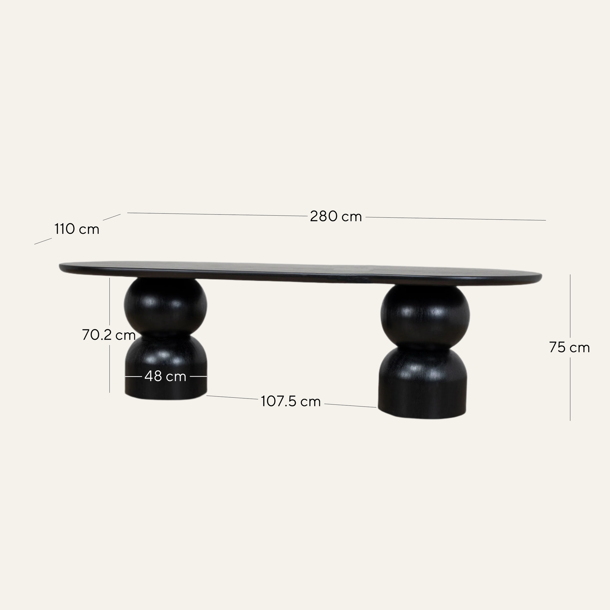 Designed for those who value both form and function, the elegant Elemental 2.8m Dining Table in Full Black introduces discerning taste to every dining experience. Its expansive, deep black surface sets a timeless tone, making a bold impression in any curated space.