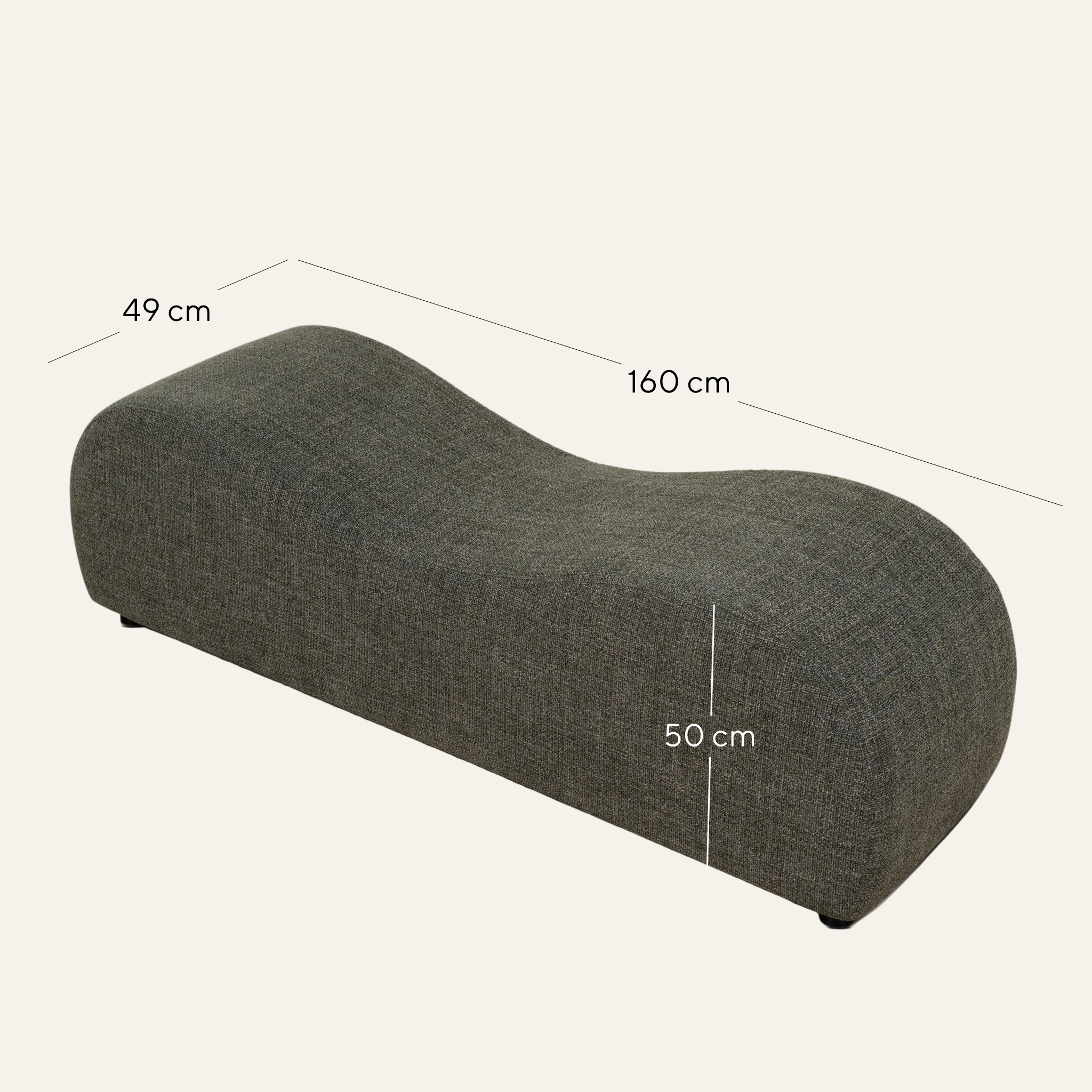 A flowing, organic silhouette gives the Eloura 1.6m Long Ottoman Bench in Kaitoke Green a sculptural presence in modern interiors. Its elongated, grounded form creates relaxed visual balance, while the rich tone adds depth.