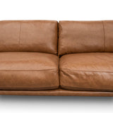 - The seat firmness of this leather sofa is soft. As a result, the leather will naturally stretch and wrinkle over time, which may occur sooner compared to firmer seating options.
