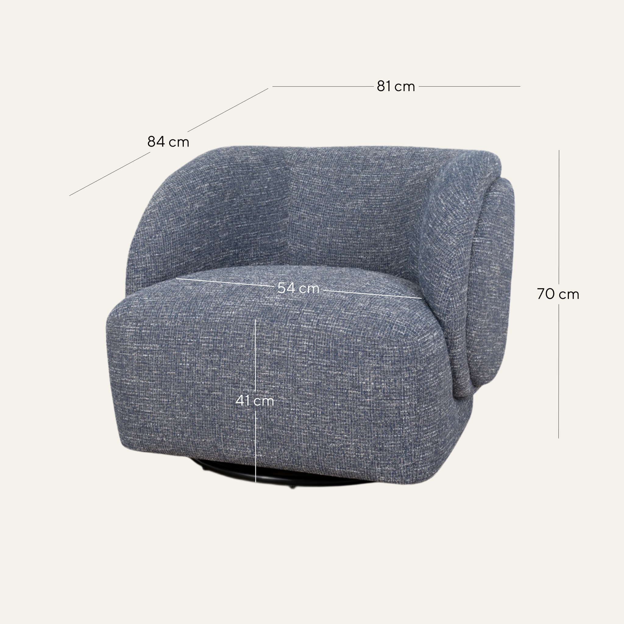 Whether placed in a reading nook, lounge, or living room, the Jensen Swivel Armchair in Prussian Blue offers a tactile experience that invites you to relax in style. Designed with seamless movement and everyday function in mind, the swivel base adds versatility to its sophisticated form.