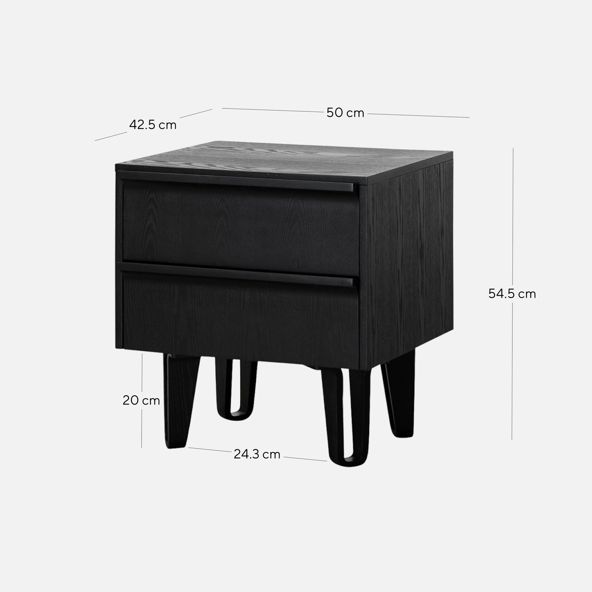 Evans Bedside Table - Full Black is the perfect piece of furniture that you need to keep your essentials within reach and elevate your bedroom decor. You are bound to fall in love with this stylish and functional bedside table that adds a touch of modernity and elegance to your space. Discover our stylish and functional collection of black bedside tables, designed to elevate your bedroom decor.