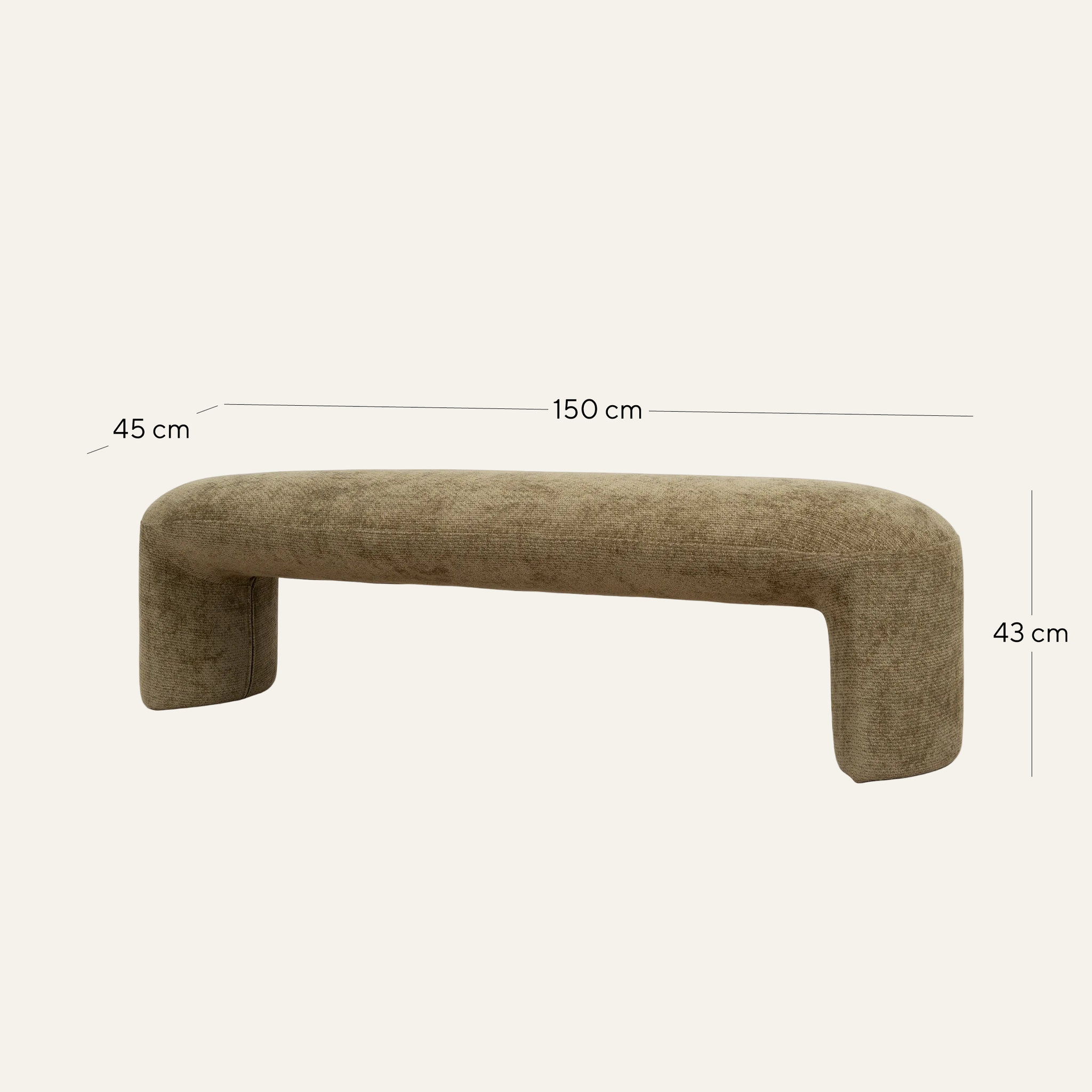 Introducing a soft architectural presence to contemporary interiors, the Everet 1.5m Long Ottoman Bench in Lila Olive features an elongated silhouette that flows seamlessly into curved supports. Its continuous form feels modern, balanced, and visually refined.