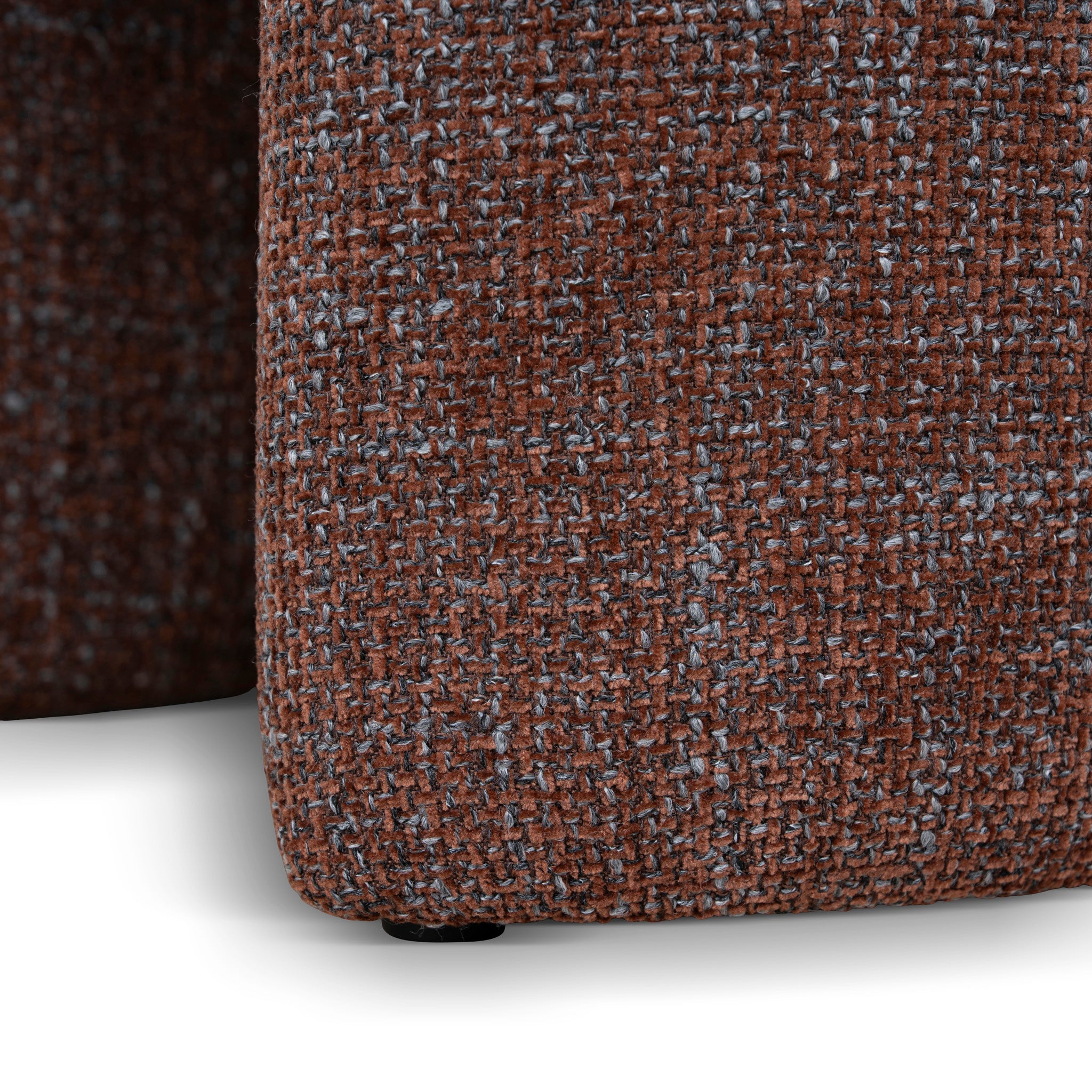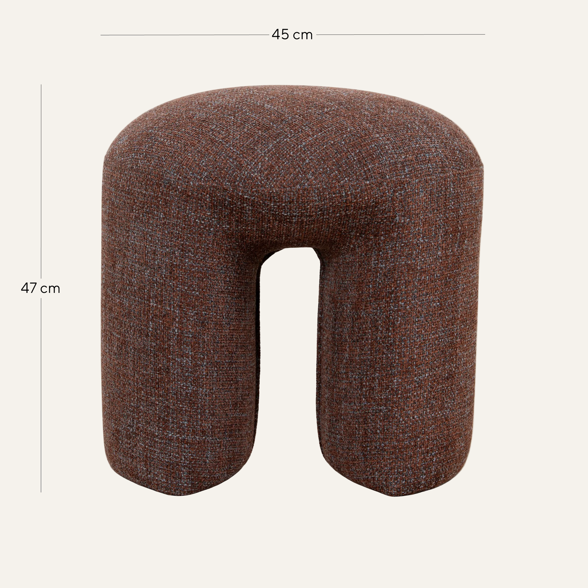 The Everet Round Ottoman in Moss Brown brings a sculptural and contemporary touch to living spaces through its bold curved silhouette. Its compact form features smooth, continuous lines that create a striking visual presence while maintaining a soft and inviting character.