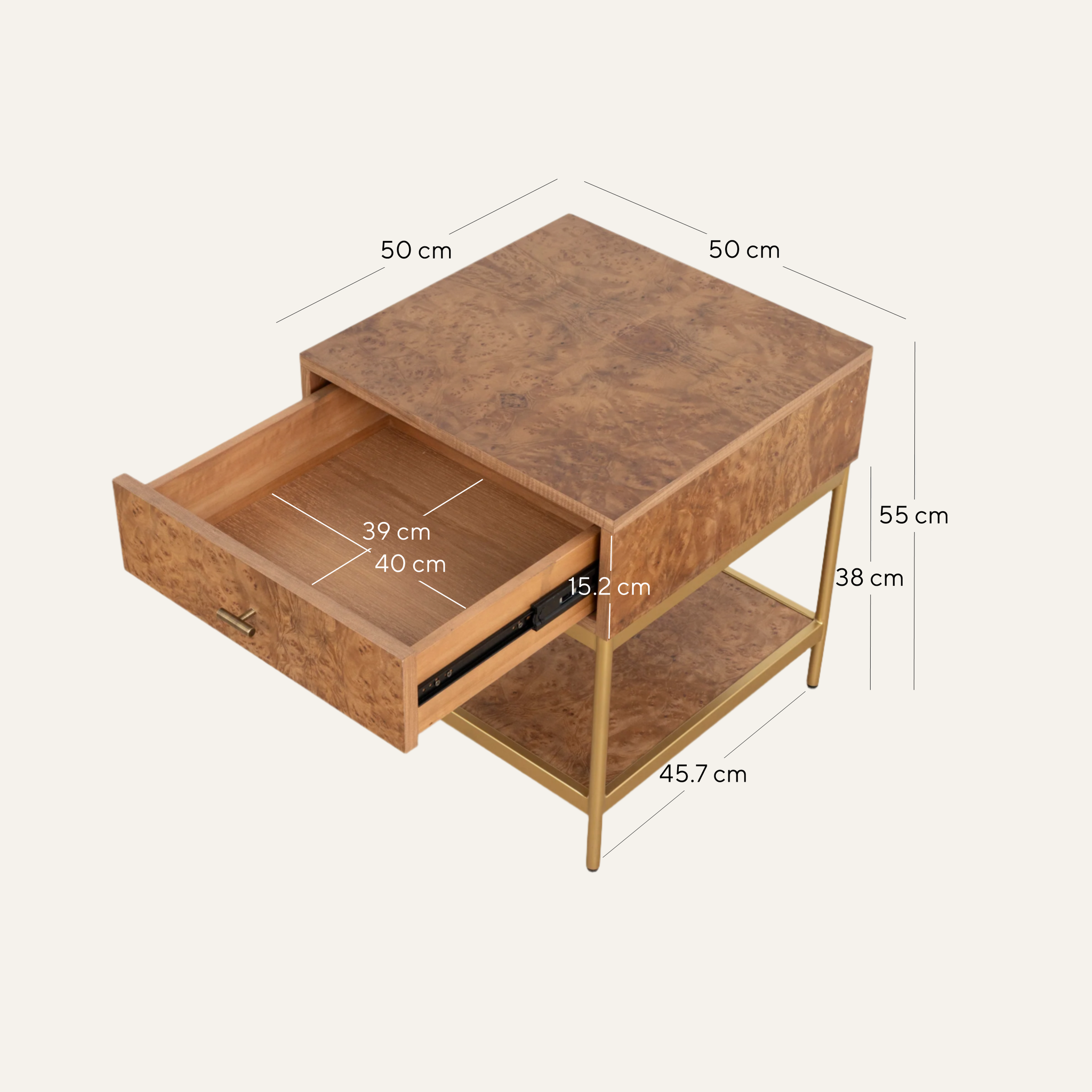 Designed to blend style with practicality, the Evermore 50cm Square Bedside Table in Natural provides a generous surface and a strong, grounded presence, ideal for keeping essentials close while elevating your room’s aesthetic. Its natural finish adds warmth and serenity, creating a harmonious ambiance.