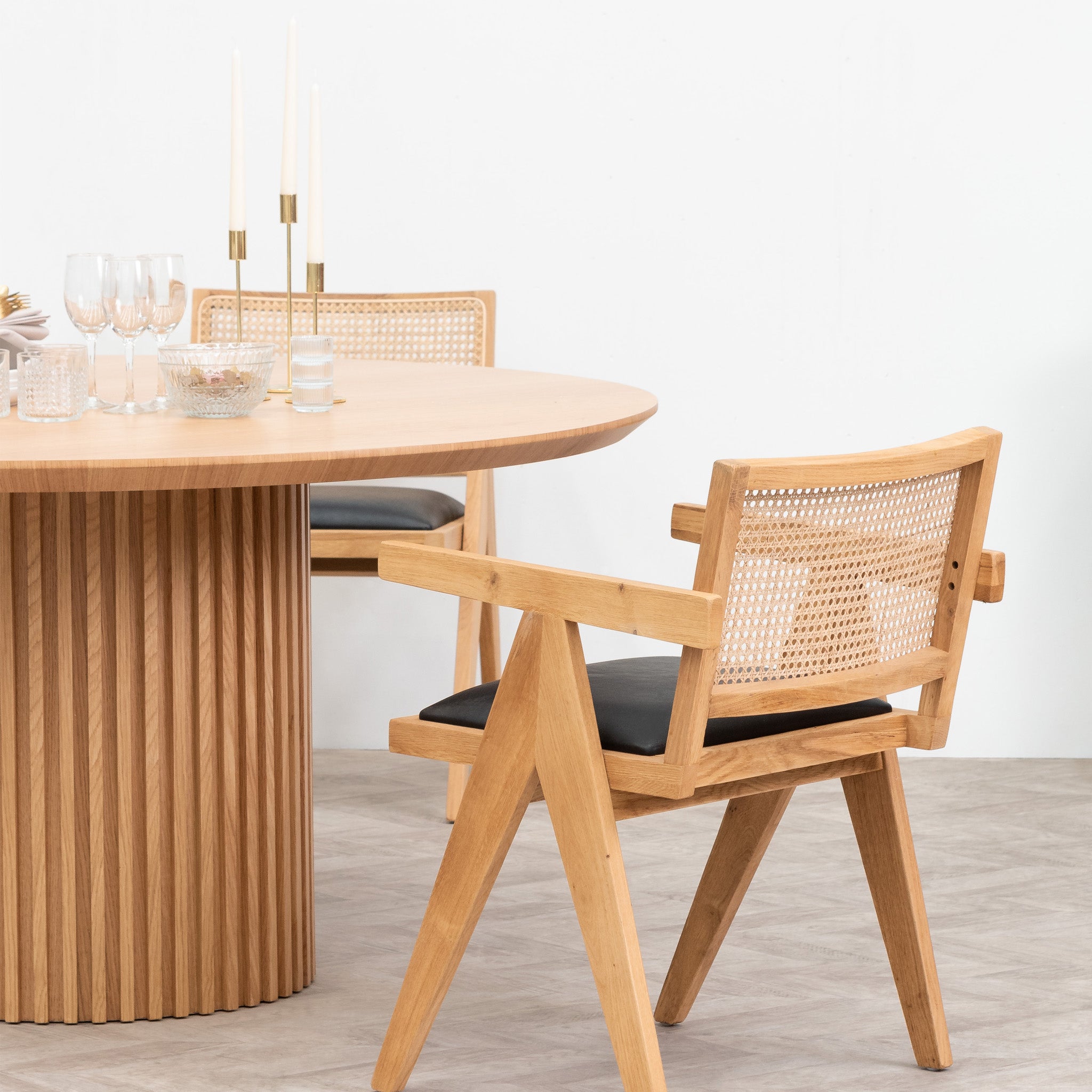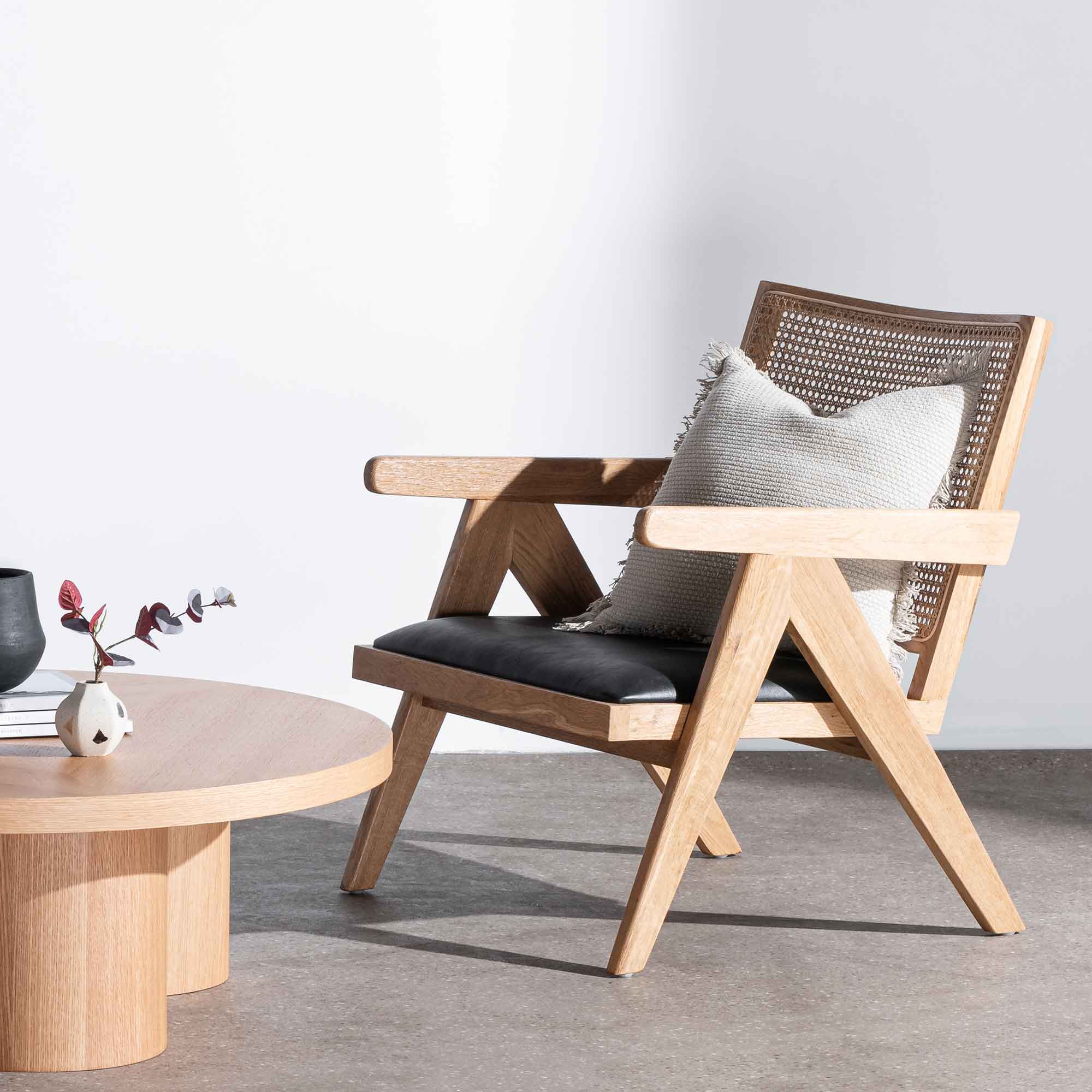 Remain seated in the modern coastal ambience of Castro Rattan Armchair - Distress Natural and Black Seat and revive those balmy summer nights. Fitted with a sleek man-made leather seat and woven rattan back - Castro offers just the right amount of texture and stylish flair to accompany your seating experience. Look for our black armchair. Whether you're seeking to infuse your space with a coastal vibe or add an organic touch to your urban oasis, our rattan furniture effortlessly adapts to your design aspirations.