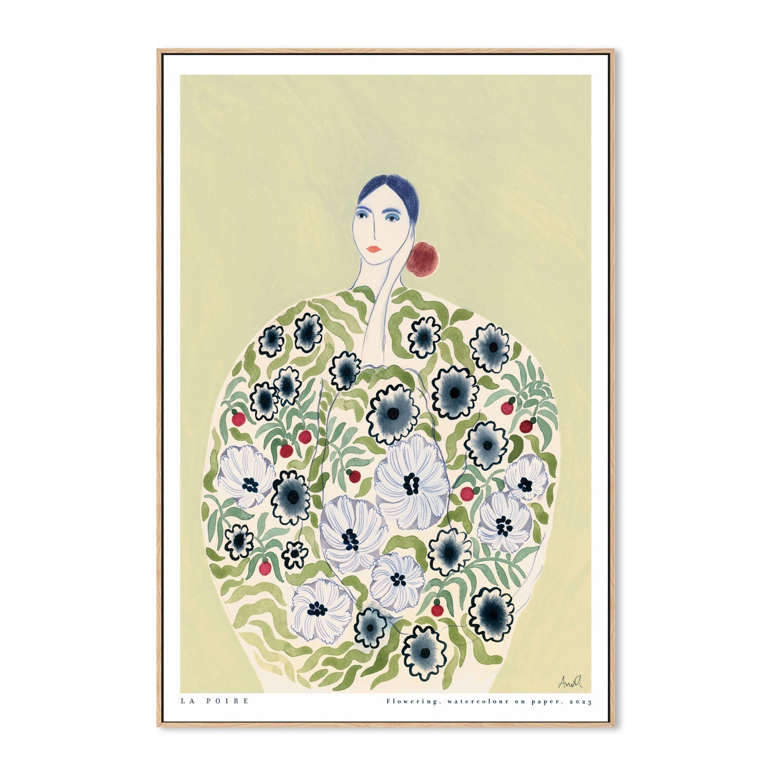 Add a touch of whimsy and modern elegance to your interior with Flowering by La Poire. This unique piece showcases delicate watercolour brushwork, bringing a serene and floral figure to life. Perfect for adding personality and vibrancy to any contemporary or eclectic space.