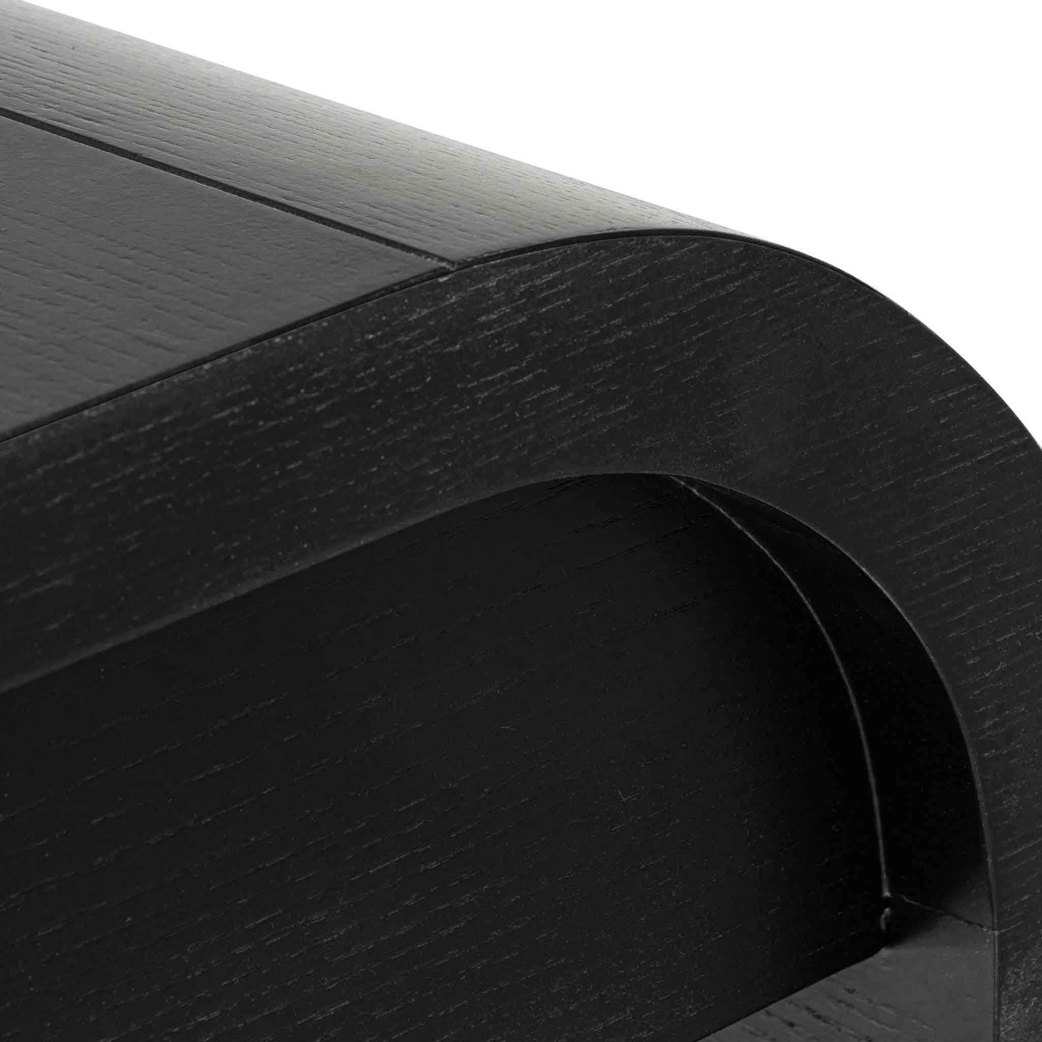 - Durable engineered wood body and frame with black oak veneer construction