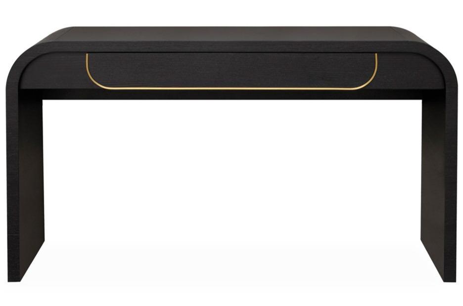 Harley 1.4m Console Table - Espresso Black will complete your hallway nook or WFH set-up with the distinctive charm. Fitted with a captivatingly textured exterior, smooth curved form, and brushed brass accent - Harley promotes a sense of grandeur and calm into any space.