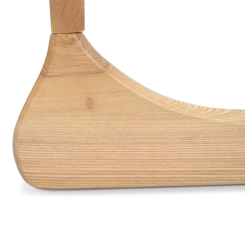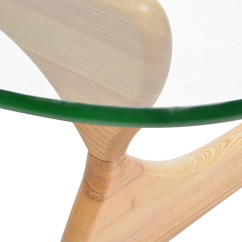 The Kyoto Rounded Triangular Coffee Table in Oak is a detailed piece that provides a modern look to any room. Place in an office reception or living room. Designed to perfection, too simple, smoothly shaped 40mm thick pieces of wood interlock to form a tripod that supports a 20mm thick transparent glass top. This product is a reproduction of Isamu Noguchi's 1944 original design, engineered using two curved pieces of solid wood to form a striking base.