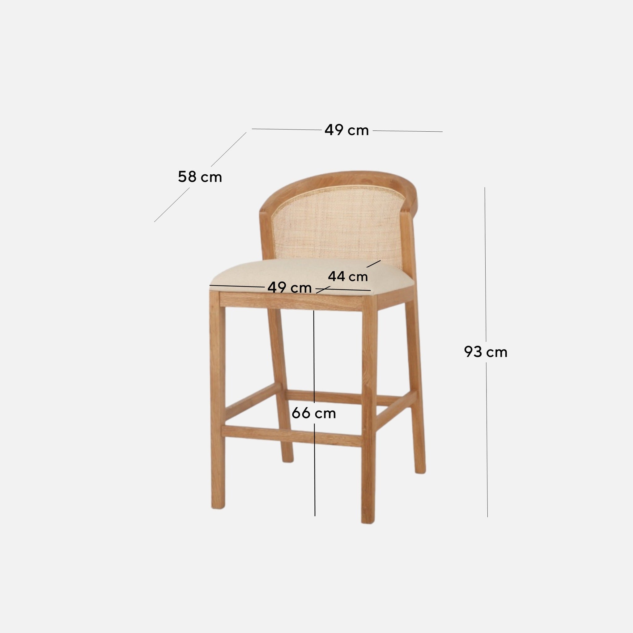 Overall: 49cm (W) x 58cm (D) x 93cm (H) Seat: 49cm (W) x 44cm (D) x 66cm (H)