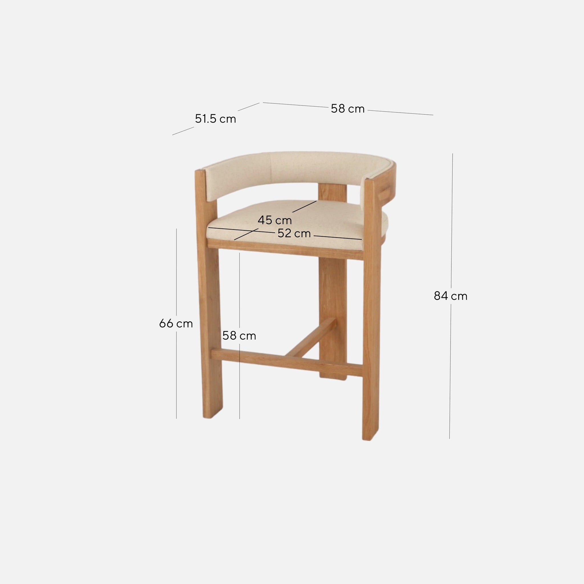The design of the Miles Barstool is all about striking a balance between form and function. Its clean lines, curved backrest, and comfortable seating make it a perfect choice for enjoying meals with family and friends. The padded light beige cushion adds a touch of comfort and complements the bold natural frame, creating a harmonious and inviting atmosphere.