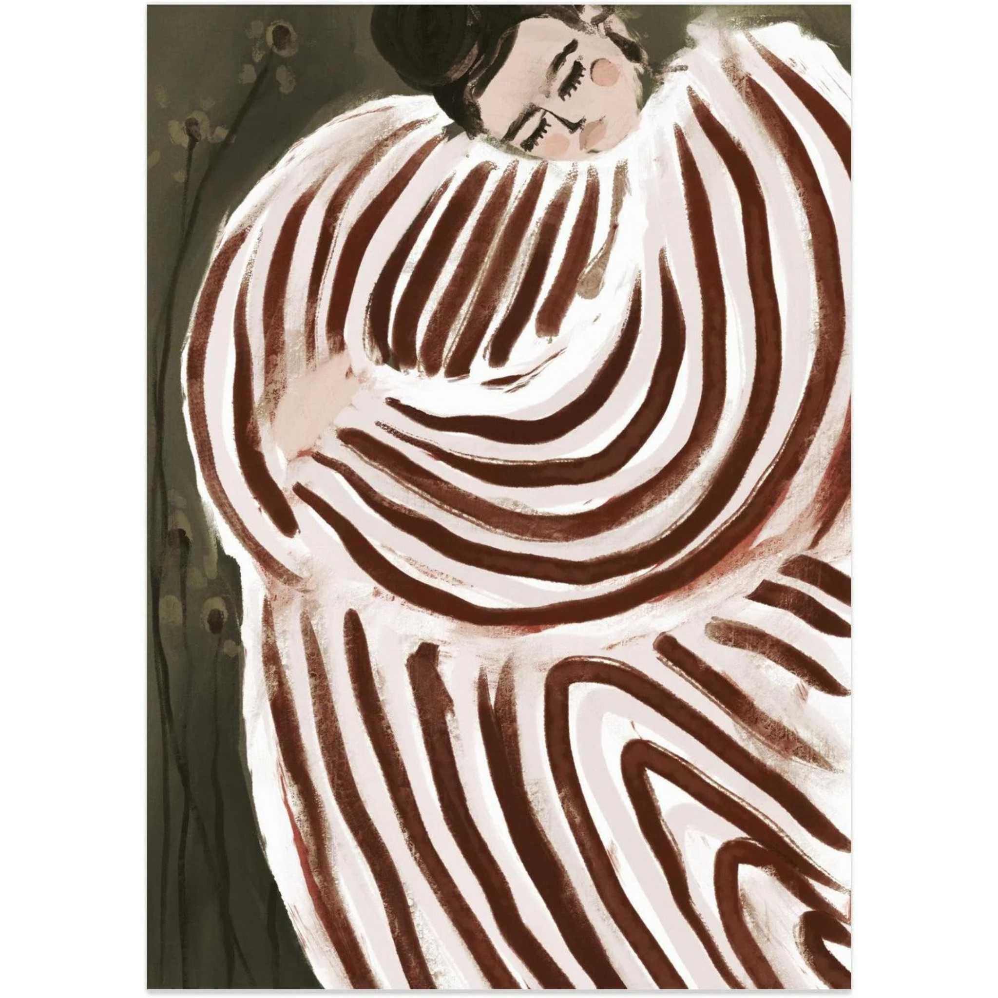 Bring a sprinkle of whimsy to your walls with the "Sleeping Princess" by Treechild. This charming piece features a tender sleeping figure wrapped in playful striped patterns, bathed in warm, earthy tones that create a cosy, calming vibe. Printed and framed by Gioia Wall Art in a sleek black frame, it’s the perfect way to add comfort and character to any room.