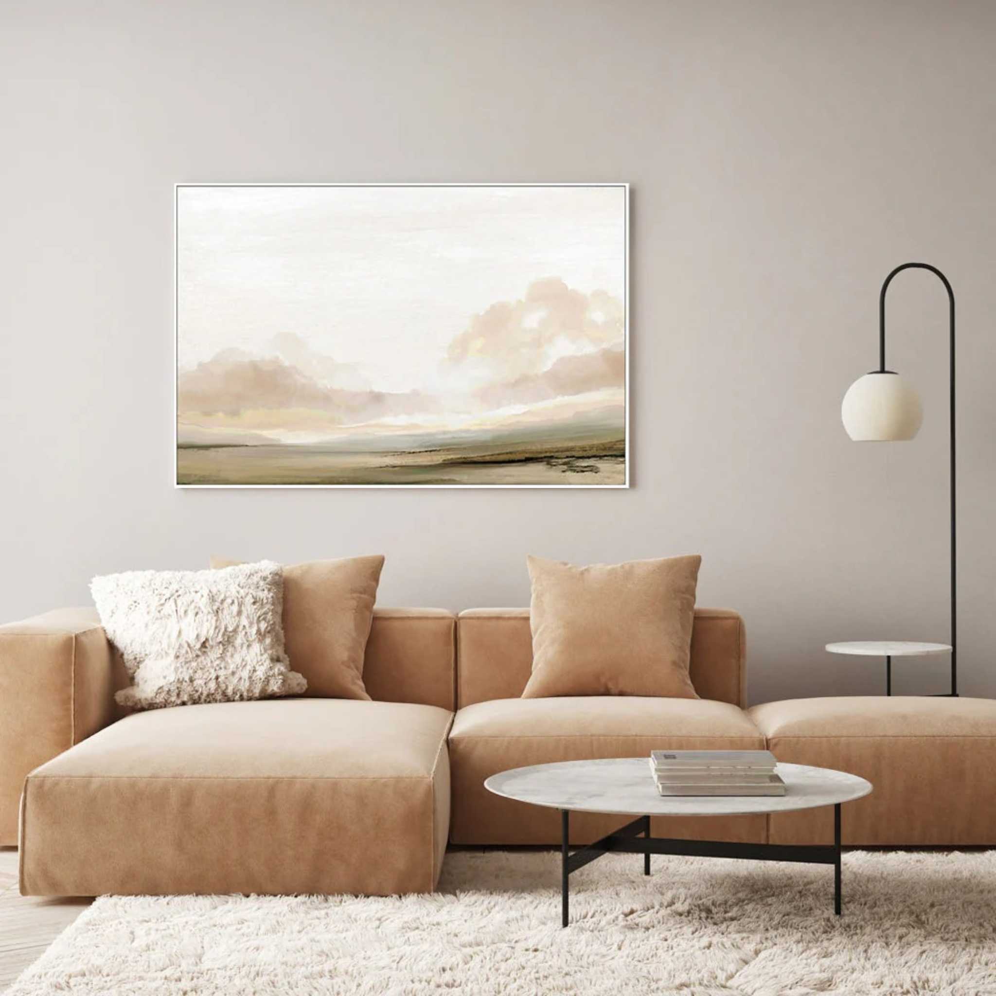 The South by Dan Hobday, beautifully printed and framed by Gioia Wall Art, invites calm with its soft earthy colours and gentle horizon. This timeless landscape adds a dash of peaceful charm, making it a wonderful pick for modern spaces that love a touch of subtle style.