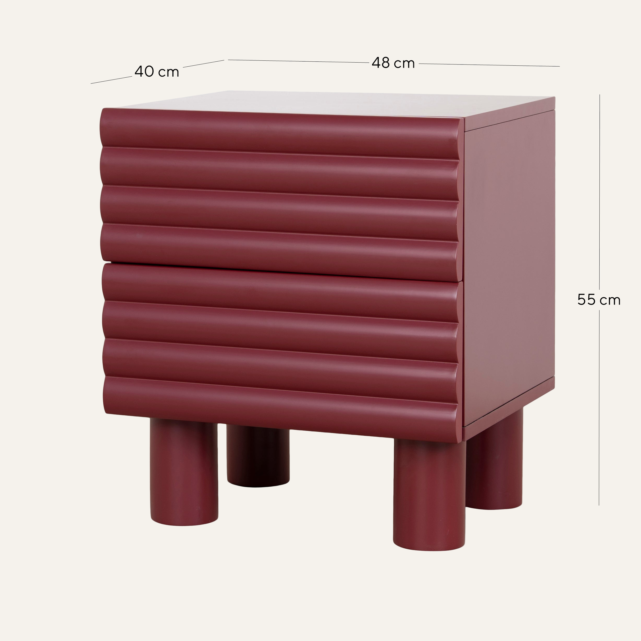Beyond its design allure, the Vasuda 48cm Bedside Table in Red offers practical functionality. The two spacious drawers glide open smoothly, providing ample room to store bedtime essentials, accessories, or reading materials while maintaining a clean and uncluttered surface.