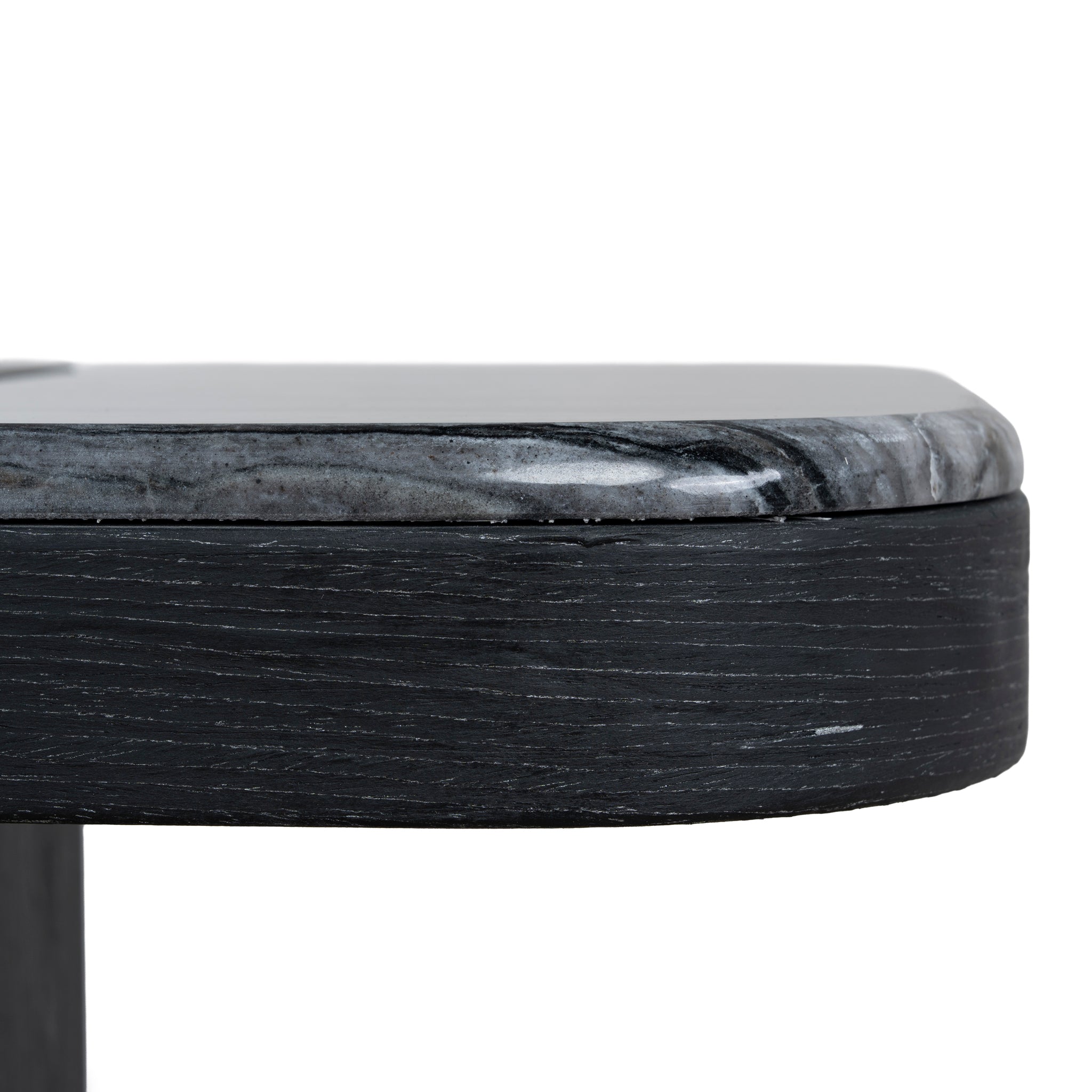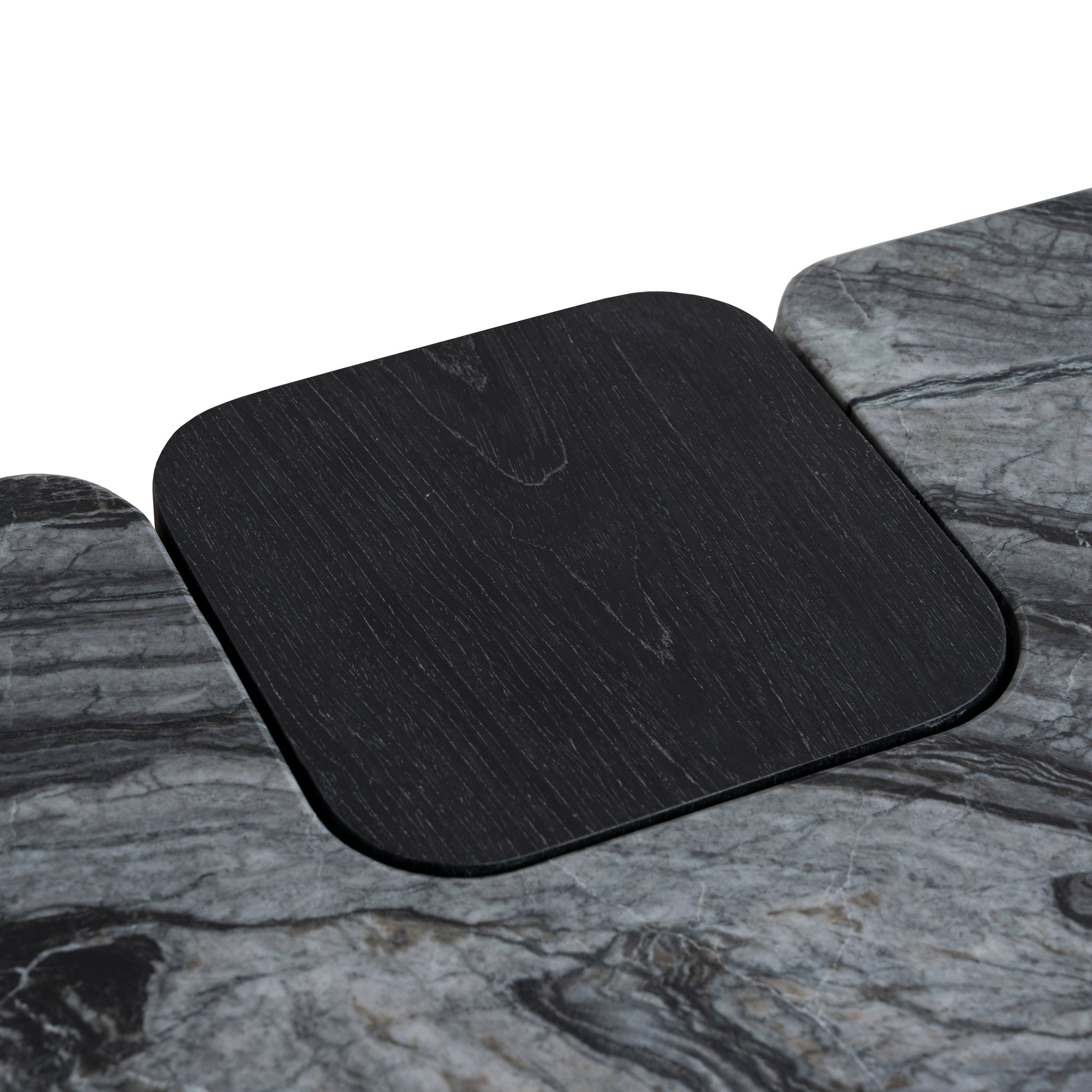 - Integrated black veneer insert on the marble surface