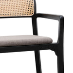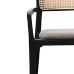 Featuring captivating modern coastal looks, Madeline Fabric Armchair - Caramel Grey is a chic design made to elevate your lounging experience. Its unique rattan backrest and linear silhouette will instill your home with minimalism and charm. Visit our website to view our wide collection of fabric armchairs.