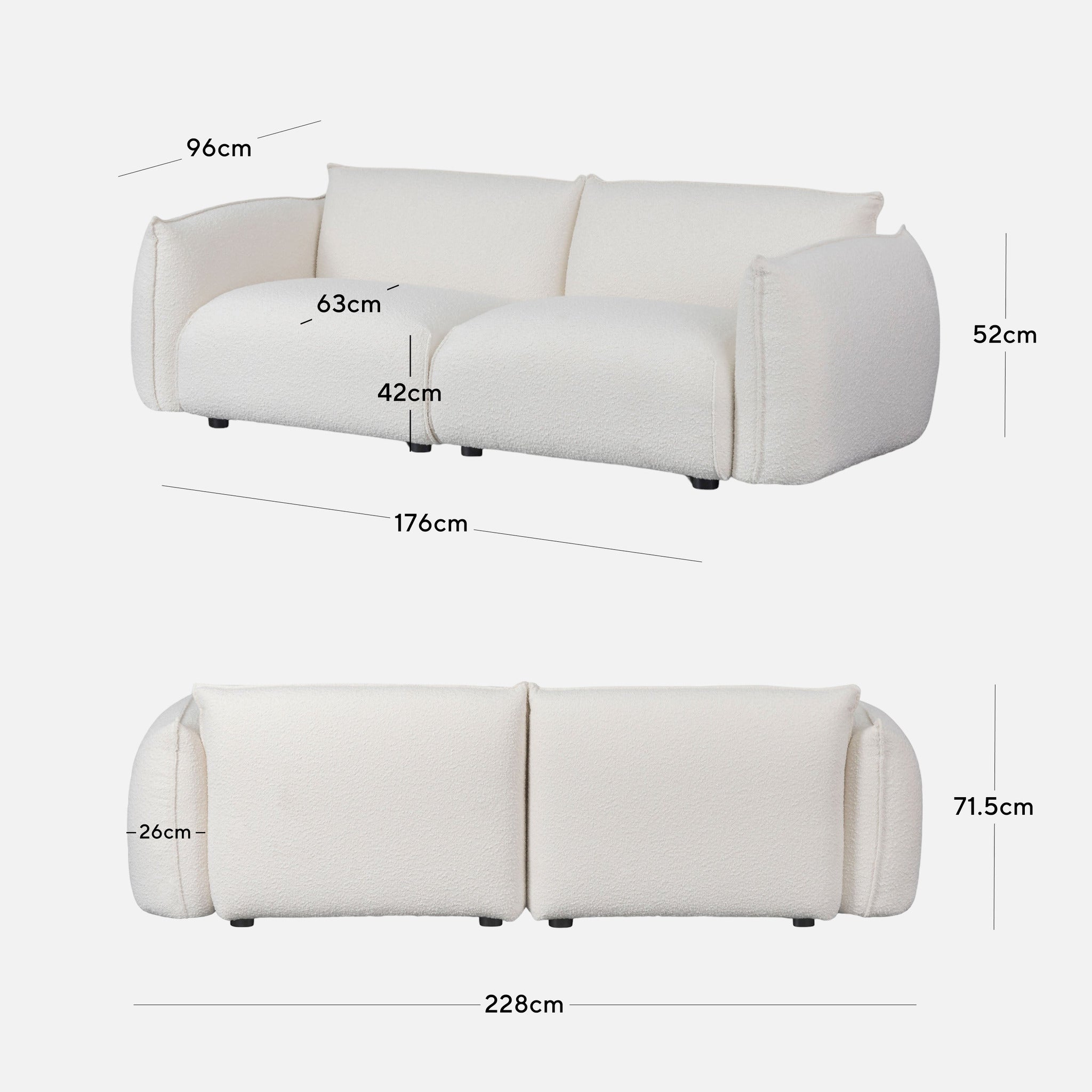 Overall: 228cm (W) x 96cm (D) x 71.5cm (H) Seat: 176cm (W) x 63cm (D) x 42cm (H) Arm Height: 52cm Leg Height: 3.5cm