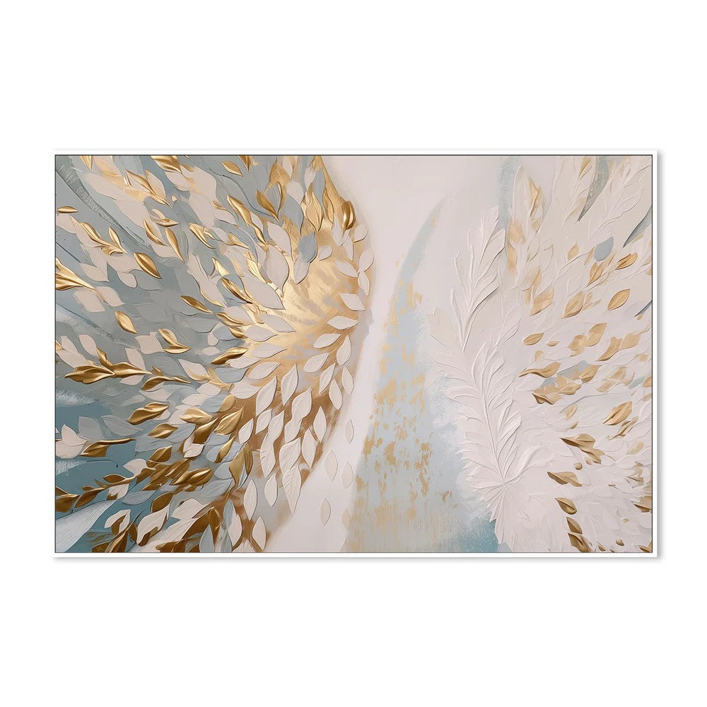 Float into elegance! Delicate botanicals dance across soft neutrals and gold, creating an ethereal sense of movement. This luminous masterpiece brings refined, contemporary charm - perfect for spaces craving a touch of graceful sophistication.