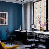 The Floyd Management Office Chair's sleek all-black design will stylishly suit any modern office or workspace with no hassle, so you can focus on the bigger projects. This product is a reproduction of Charles and Ray Eames' influential office chair.