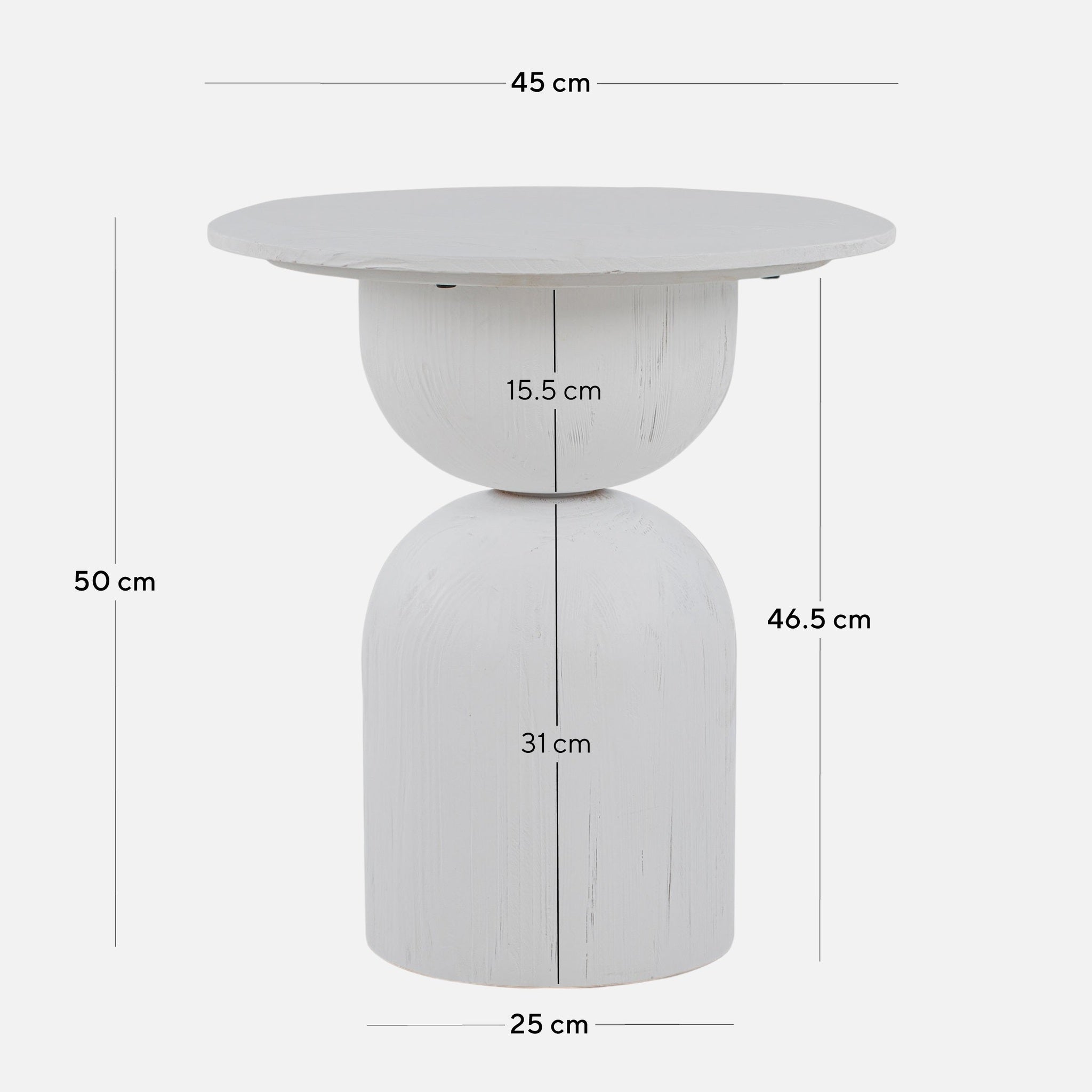 Overall: 45cm (W) x 45cm (D) x 50cm (H) Base diameter: 25cm Base Height: 46.5