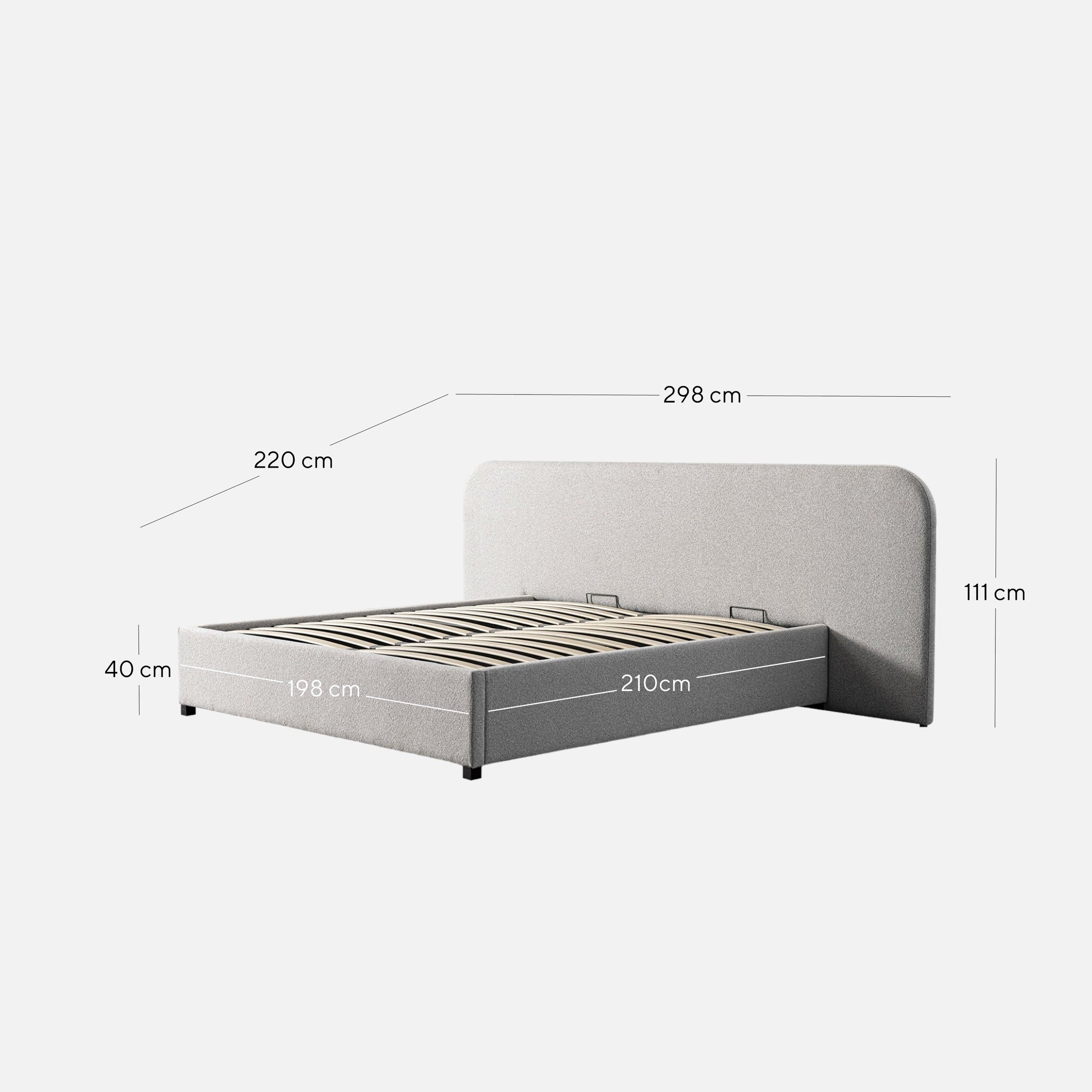 Designed for both comfort and functionality, Greta King Sized Bed Frame features convenient storage underneath, keeping your space organized. Its robust timber construction paired with a stylish fabric finish ensures durability and elegance, making it a perfect addition to any bedroom.