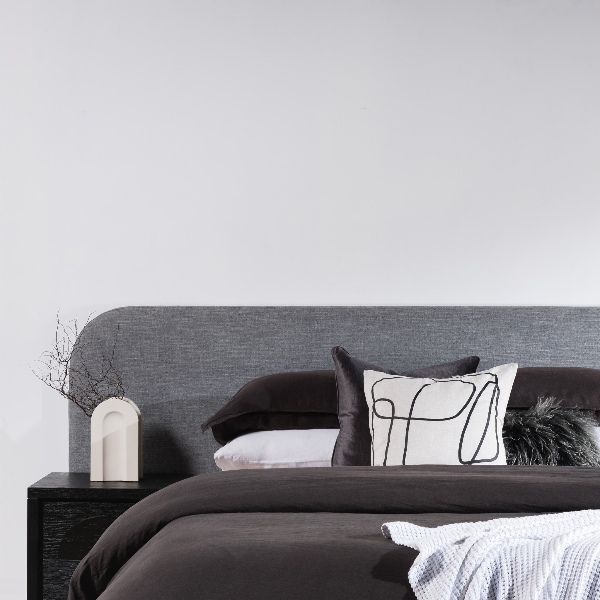 - Rectangular headboard with rounded edges on top