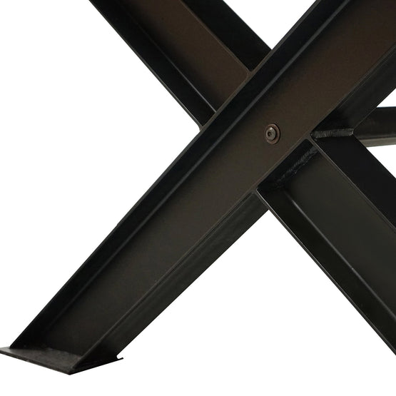 - X-crossed steel legs and support beam in a black finish