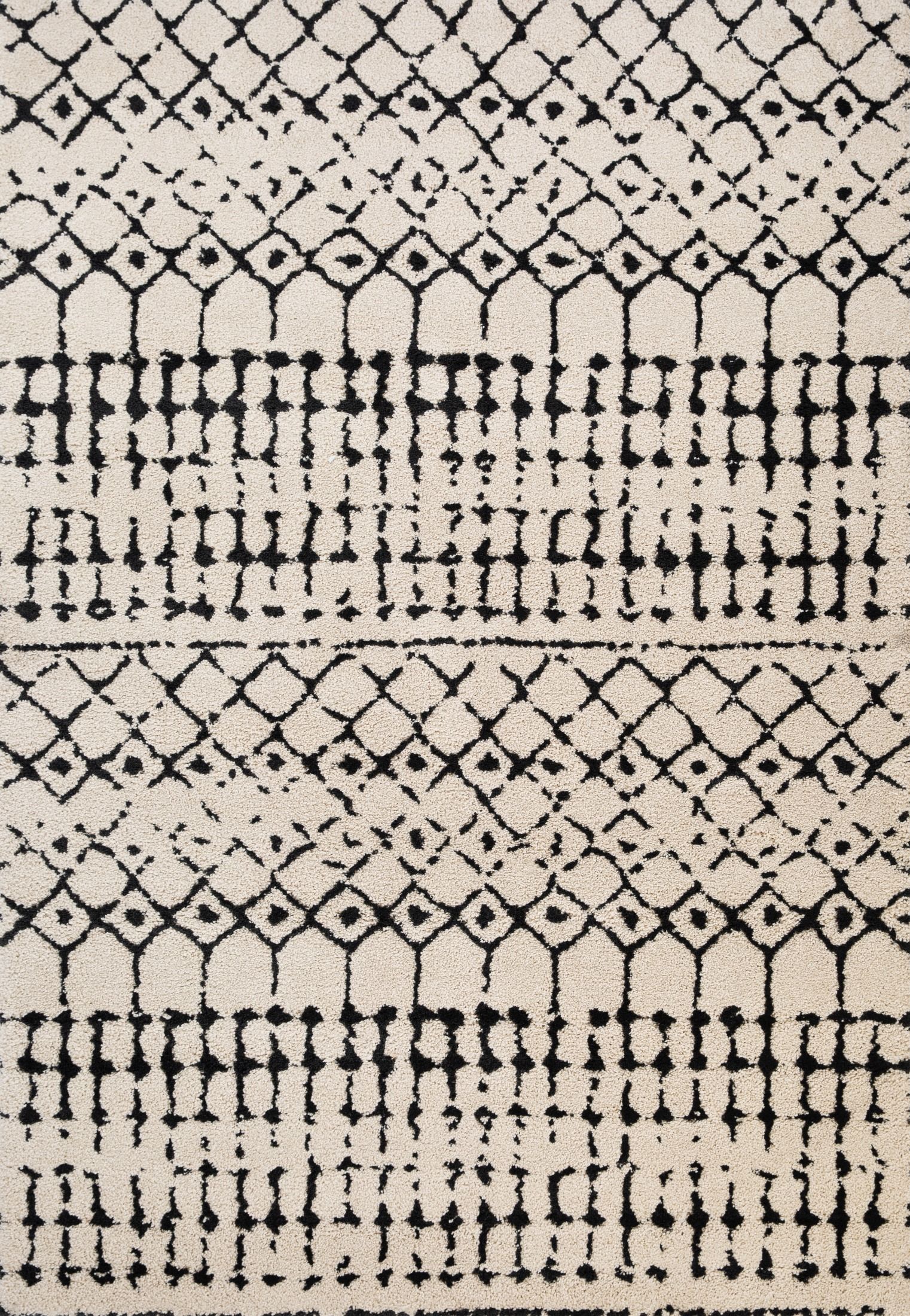 Hiero Geometric Tribal Patterned Rug - Ivory and Charcoal 160 cm x 230 cm