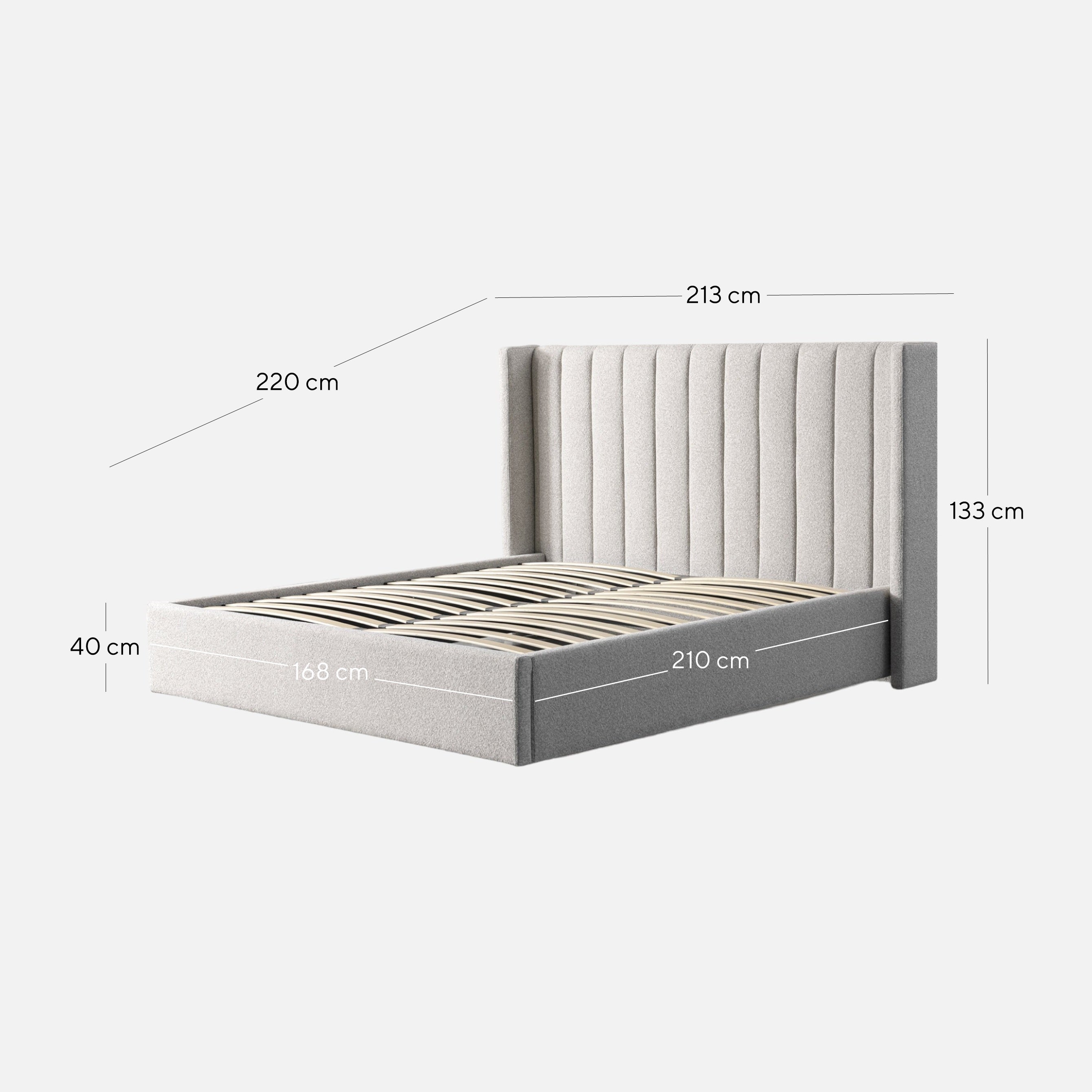 Overall: 213cm (W) x 220cm (D) x 133cm (H) Headboard: 213cm (W) x 25cm (D) x 133cm (H) Bedside Frame: 168cm (W) x 210cm (D) x 40cm (H) Leg Height: 5cm