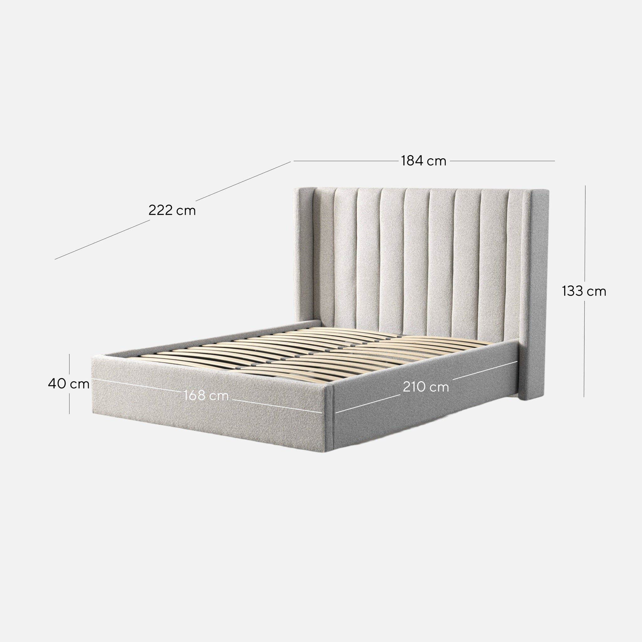 Overall: 184cm (W) x 222cm (D) x 133cm (H) Headboard: 184cm (W) x 25cm (D) x 133cm (H) Bedside Frame: 168cm (W) x 210cm (D) x 40cm (H) Leg Height: 5cm