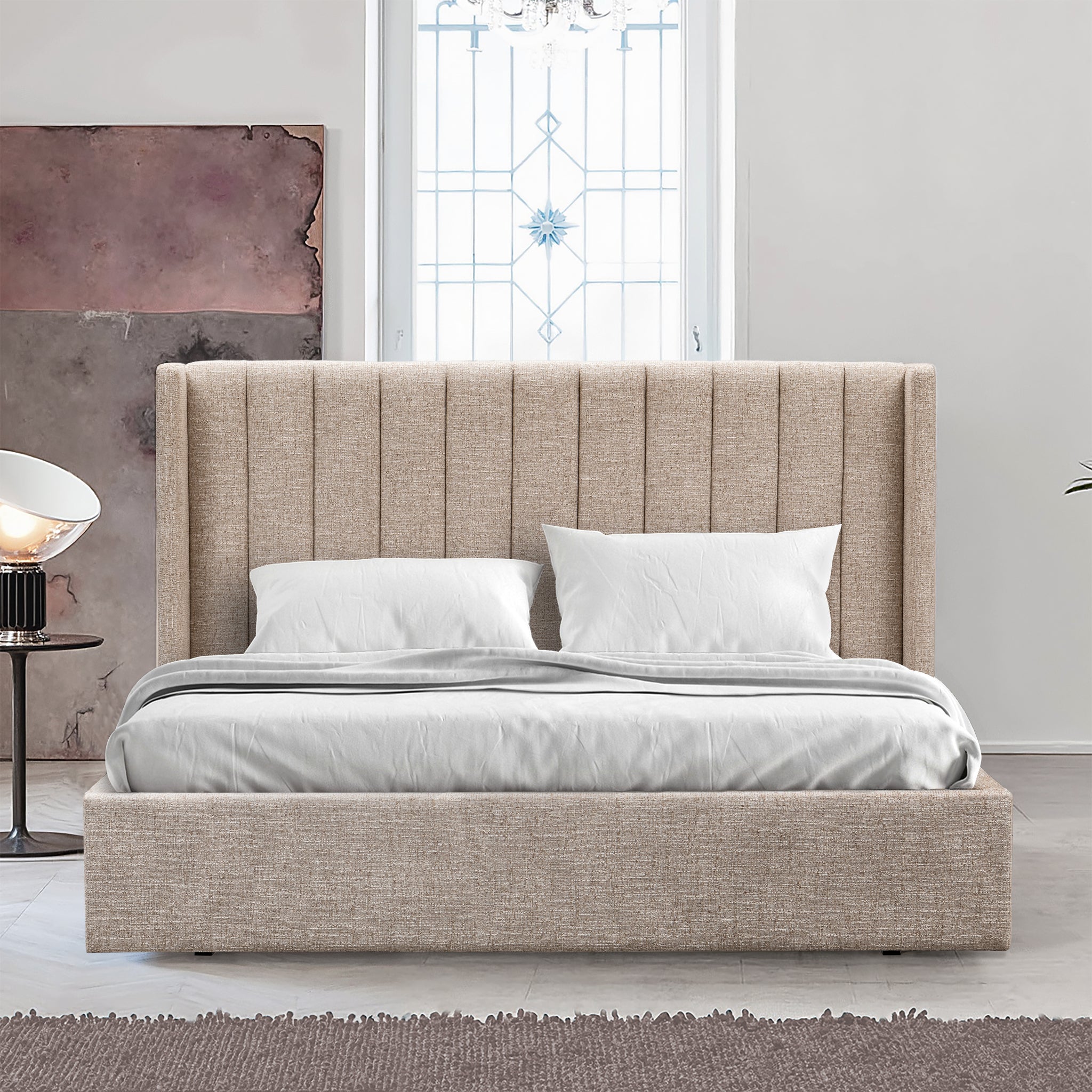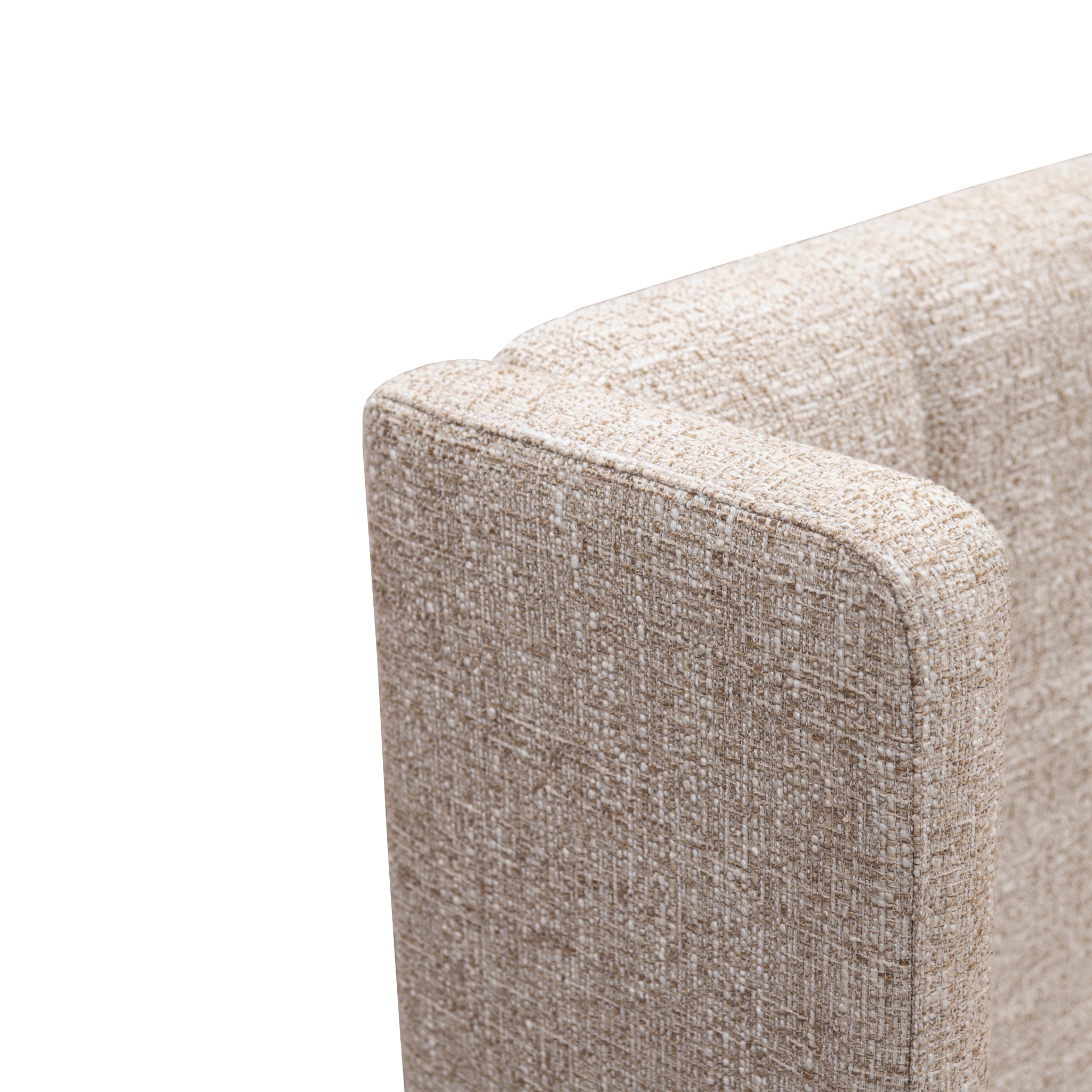 The Hillsdale Queen Wide Base Bed Frame in Pale Beige frame offers steady support while maintaining a comfortably cushioned structure. The subtle texture of the fabric adds dimension to its tailored silhouette, while the sturdy base provides a sense of stability that’s felt from the moment you settle in.
