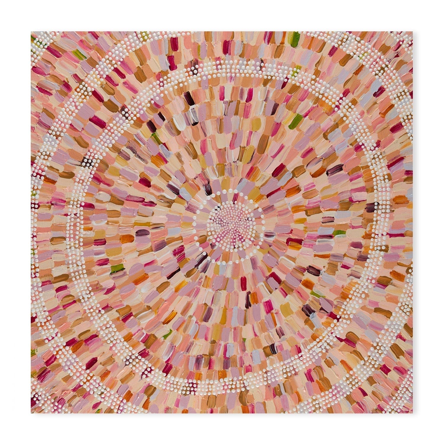 Add a touch of warmth and culture to your home with "Home, By Bri Chelman"! This beautiful Aboriginal-inspired artwork by Gioia Wall Art features intricate circular patterns in soft pink and earthy tones, bringing a sense of connection and harmony to any space. Celebrate the beauty of diversity with this stunning piece.