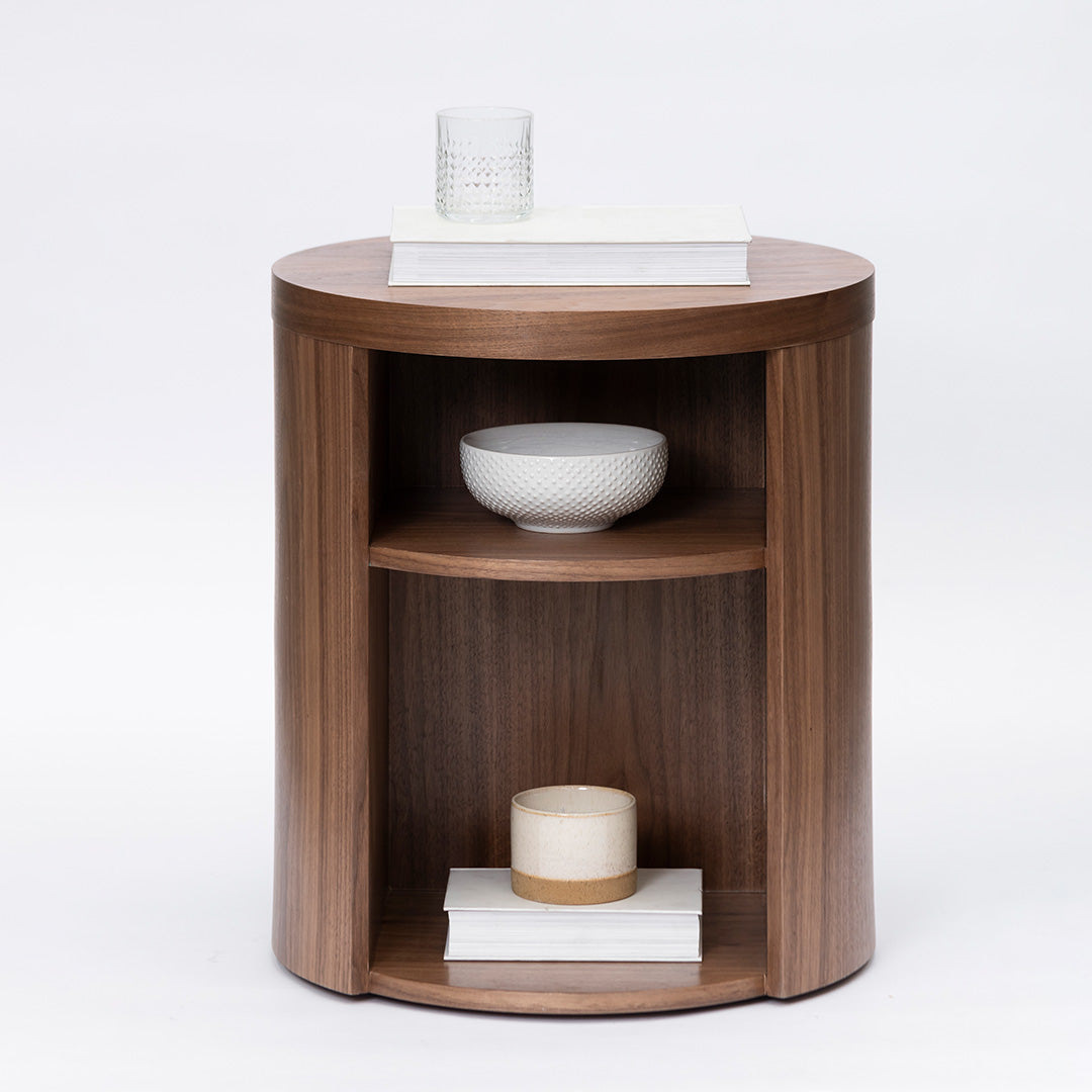 Honigold Round Wooden Bedside Table - Walnut