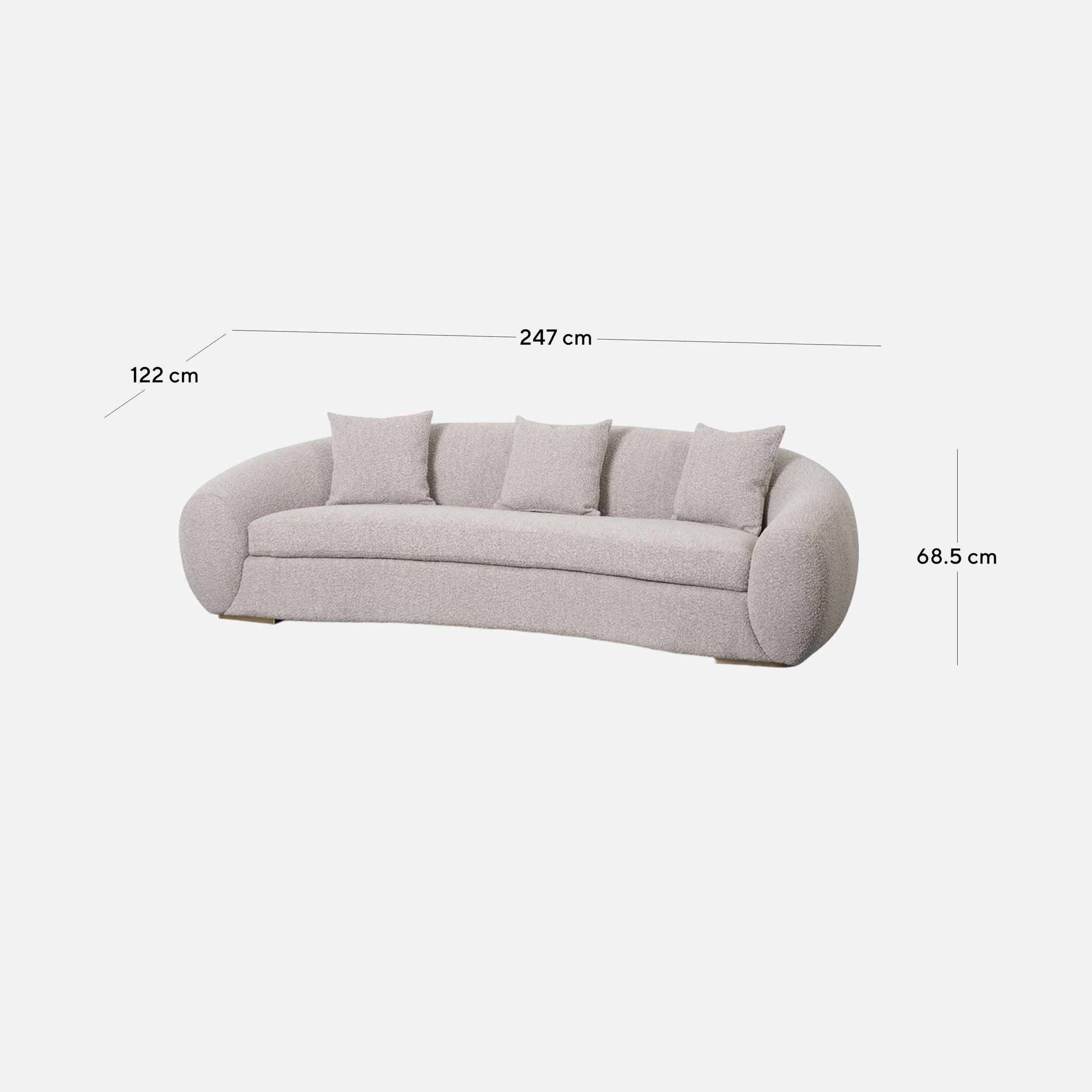 Indulge in the luxurious texture of our boucle 3 seater sofa, a chic and trendy addition that adds both comfort and style to your home.