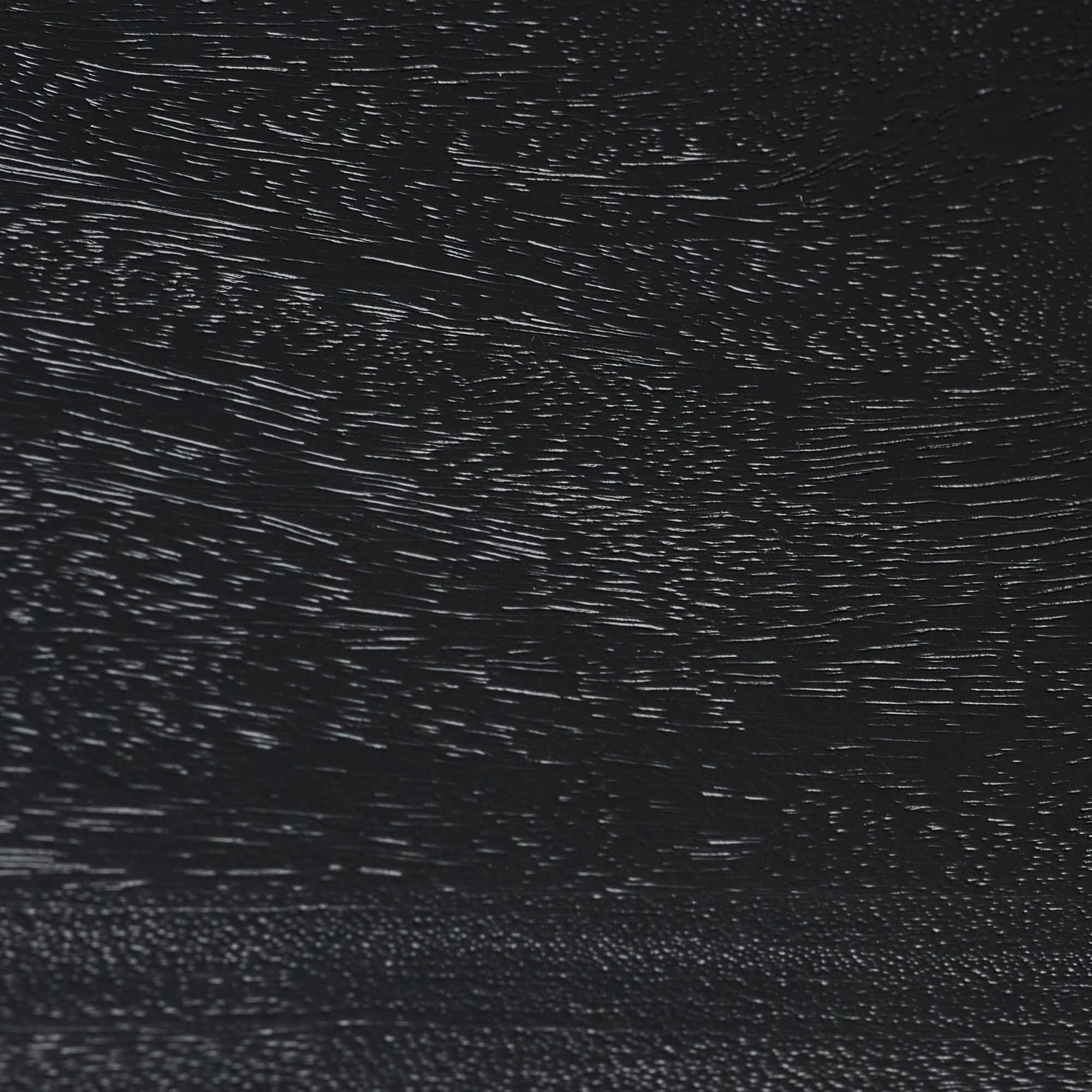 - Handcrafted and detailed stained black mango wood construction with visible wood grain top, sides and back