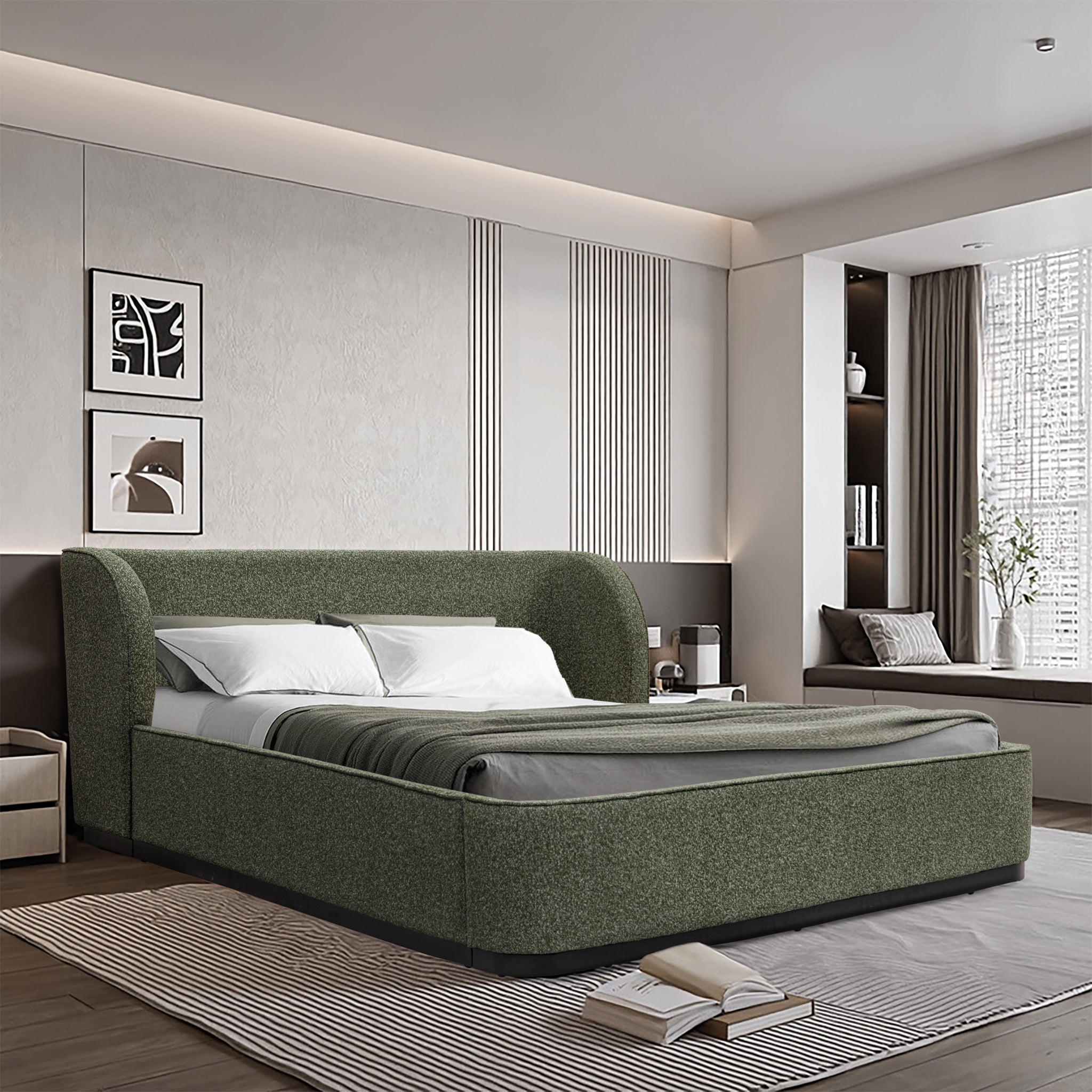 Its cocoon-like silhouette hugs the mattress in comfort, while the textured green fabric adds a layer of visual interest without overpowering your palette. The Jamar Queen Bed Frame in Hunter Green frame offers an elevated look that’s easy to pair with natural finishes, cozy knits, or crisp white bedding.