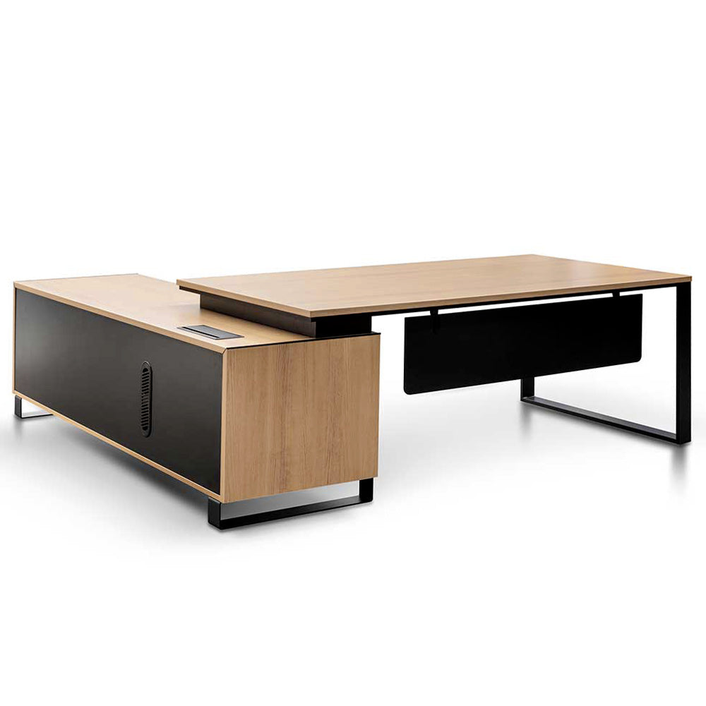 Work in modern mid-century style and feature the exceptional design of the Janell 2.3m Right Return Office Desk - Natural. Enjoy complete working mobility and simple functionality with Janell's details of ample storage, space, and size. Finished in powder black and natural wood tones, the office desk will embalm your workspace with a clean aesthetic. Check out our natural office desks here.