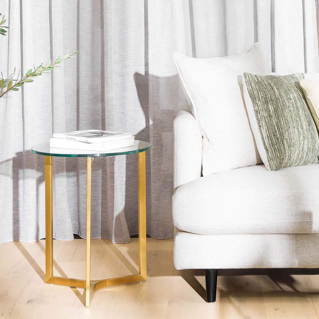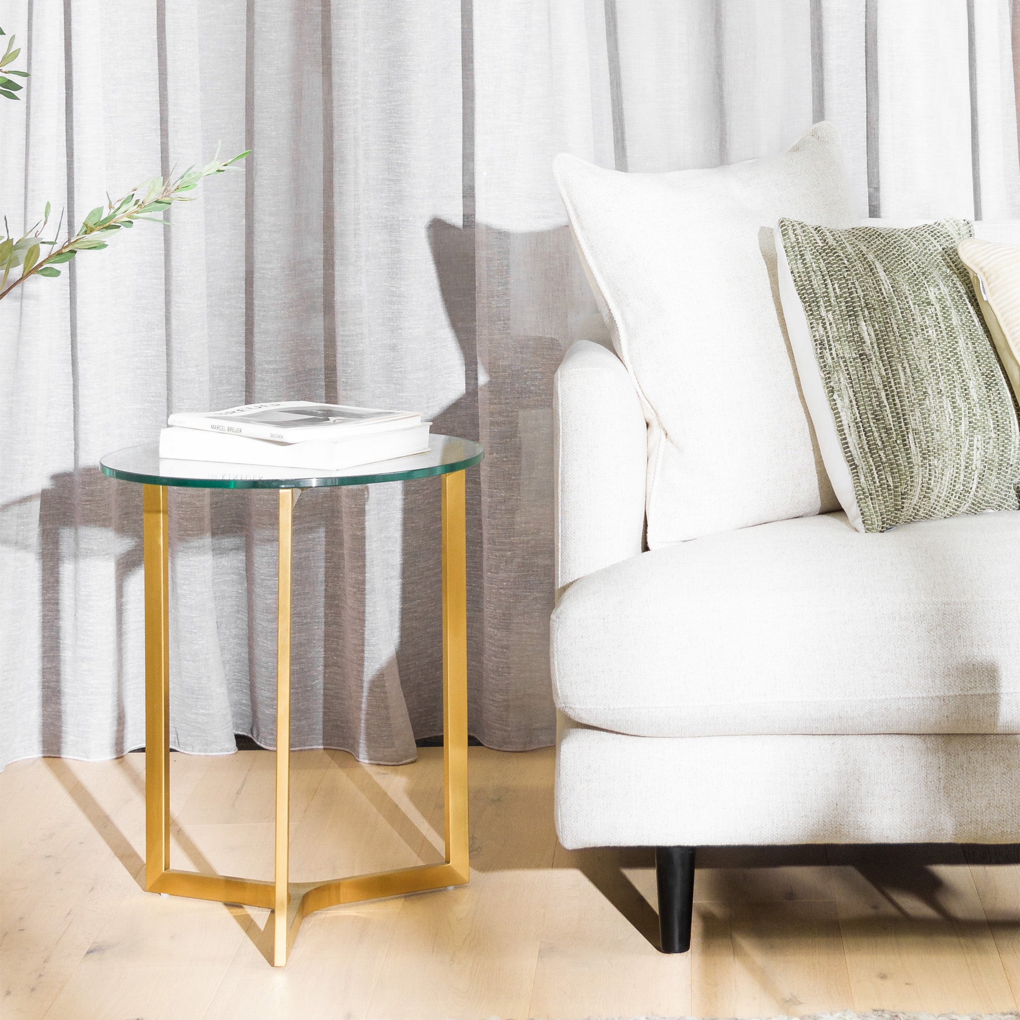 Blending an art deco aesthetic with a modern lens, Janet Round Glass Side Table – Gold Base will infuse your space with a glamorous charm. The tall and compact silhouette is perfect for narrower spaces or as an accent to your existing furnishings. Practical yet stylish, Janet is a sophisticated addition to any space thanks to is stunning and open design.
