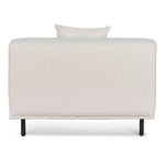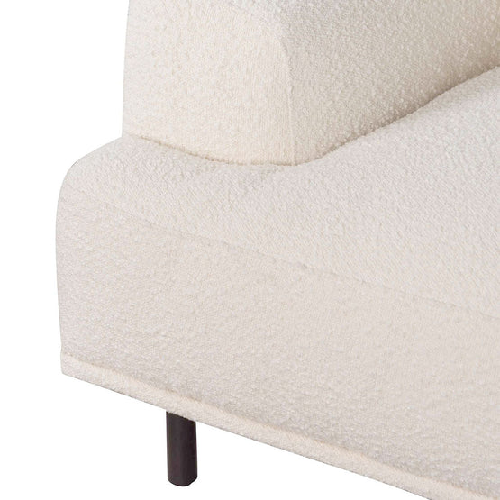 - Upholstered in a durable ivory white boucle fabric