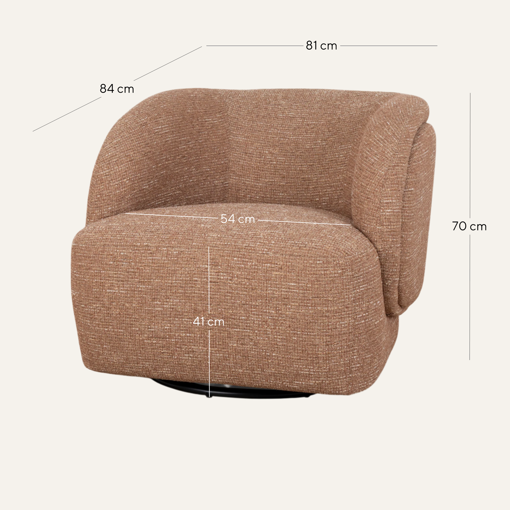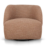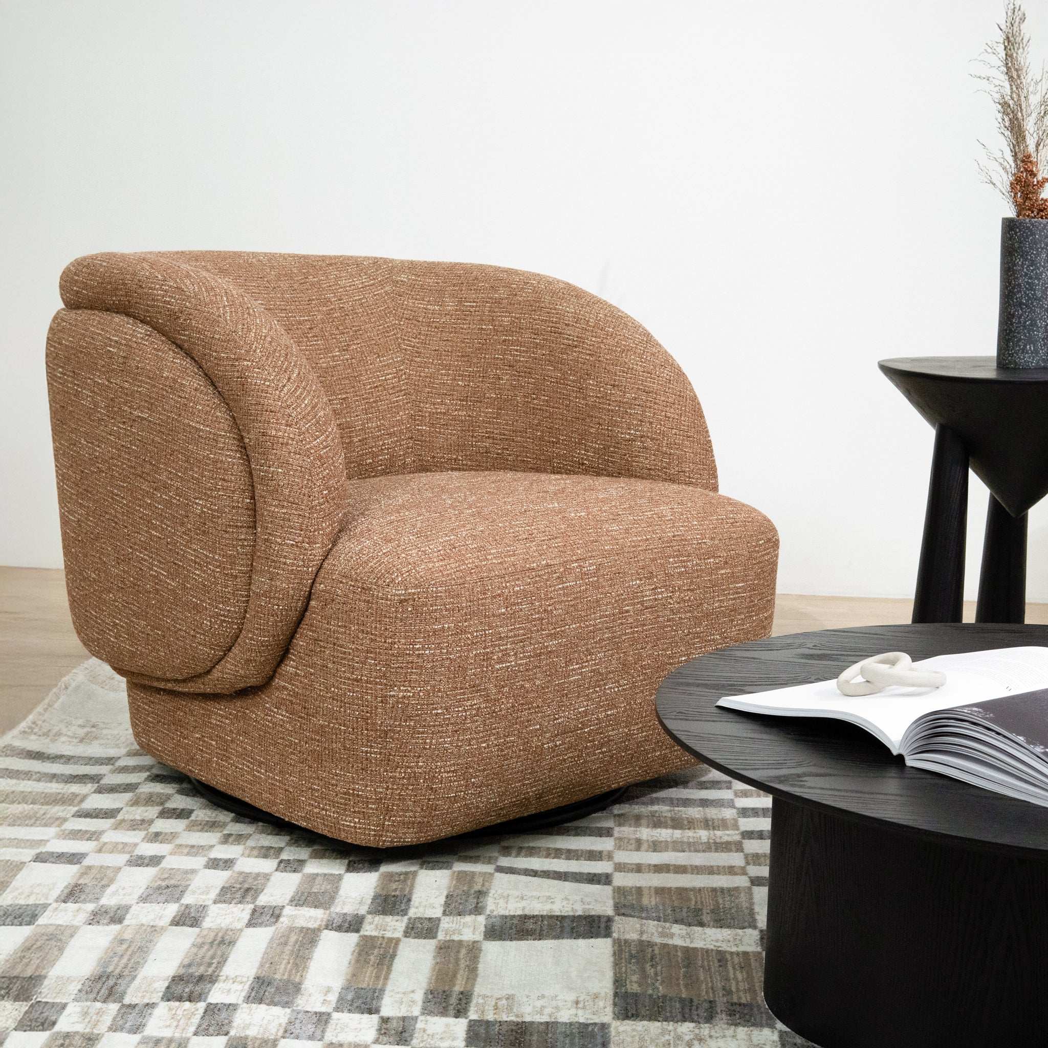 Its warm, earthy hue brings depth and richness to any interior, while the gracefully curved form creates a captivating visual statement. Thoughtfully designed for function and beauty, the Jensen Swivel Armchair in Russet Brown features a smooth swivel base and plush, supportive cushioning, inviting you to unwind in effortless style.