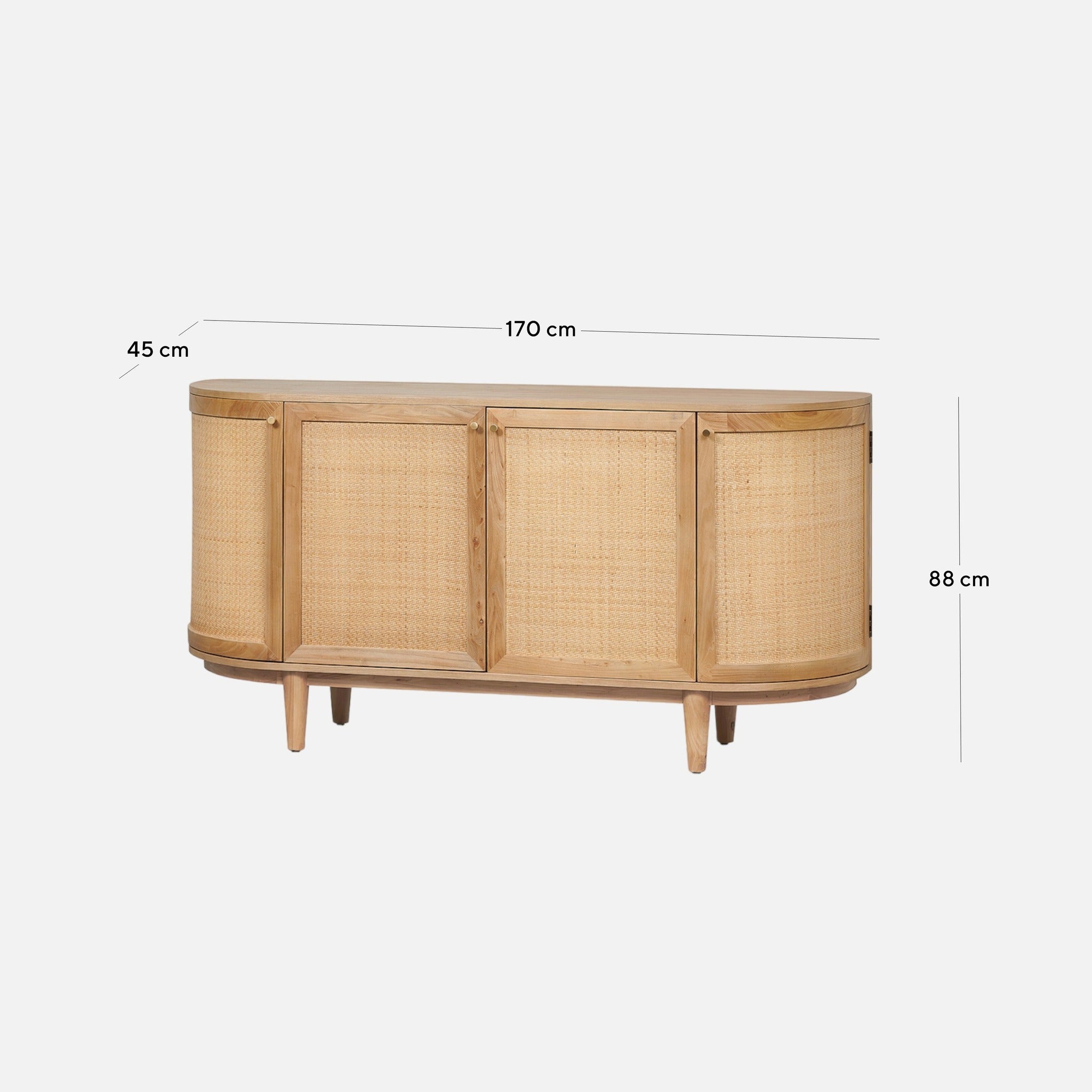 Jesse 1.7m Natural Elm Sideboard - Rattan Doors