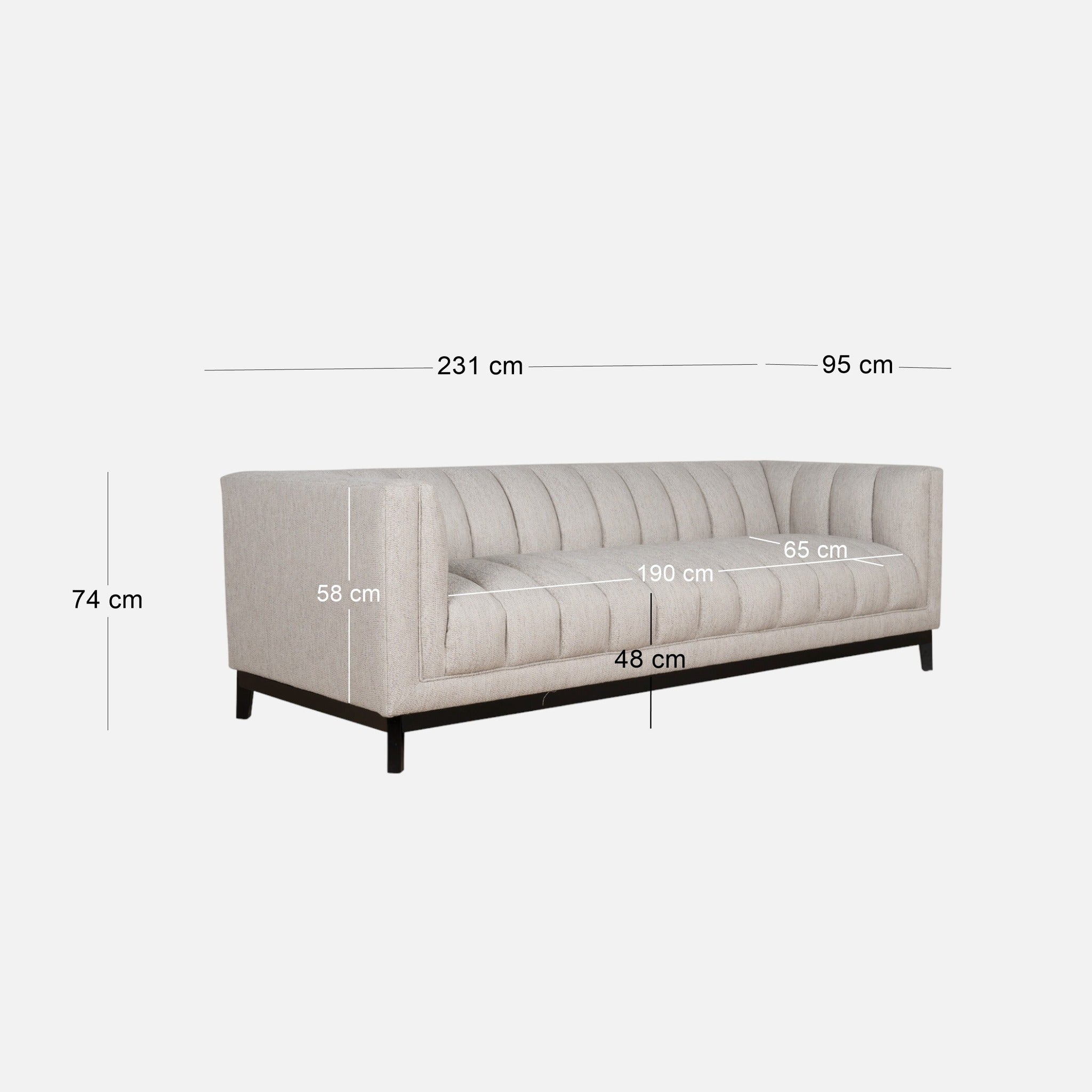 Overall: 231cm (W) x 95cm (D) x 74cm (H) Seat: 190cm (W) x 65cm (D) x 48cm (H) Arm Height: 65cm Leg Height: 16cm