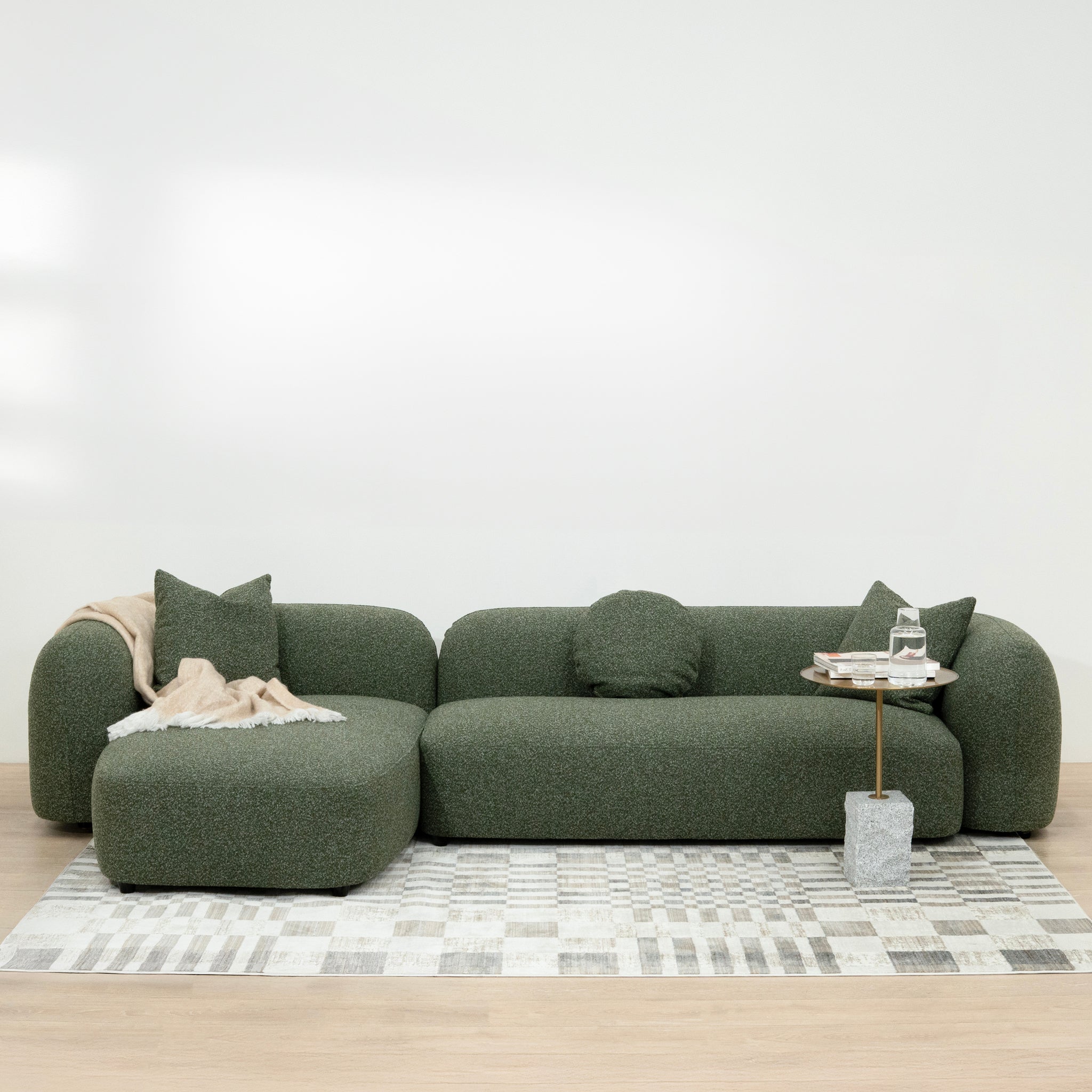 Justus 3 Seater Left Chaise Sofa - Amazon Green
