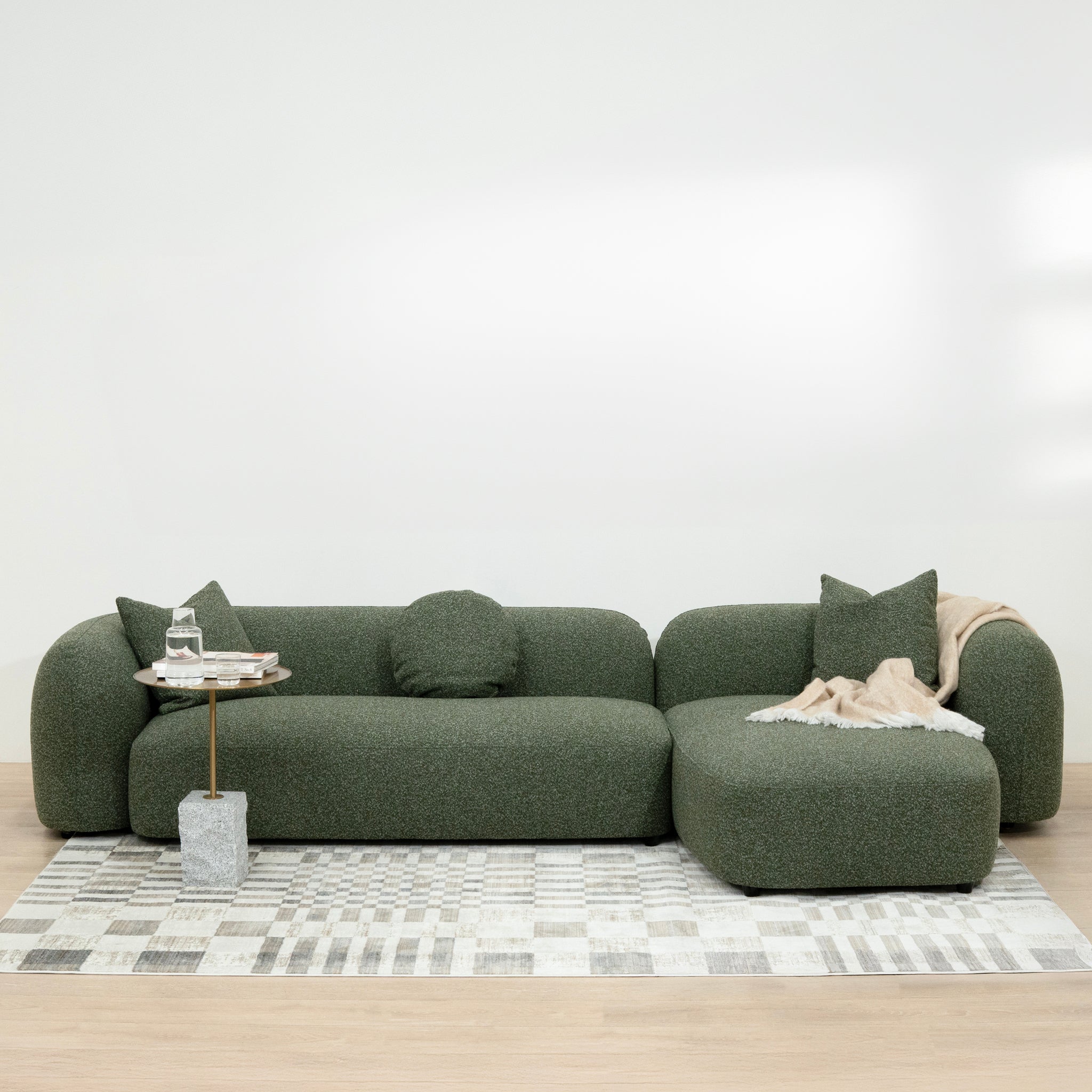 Justus 3 Seater Right Chaise Sofa - Amazon Green