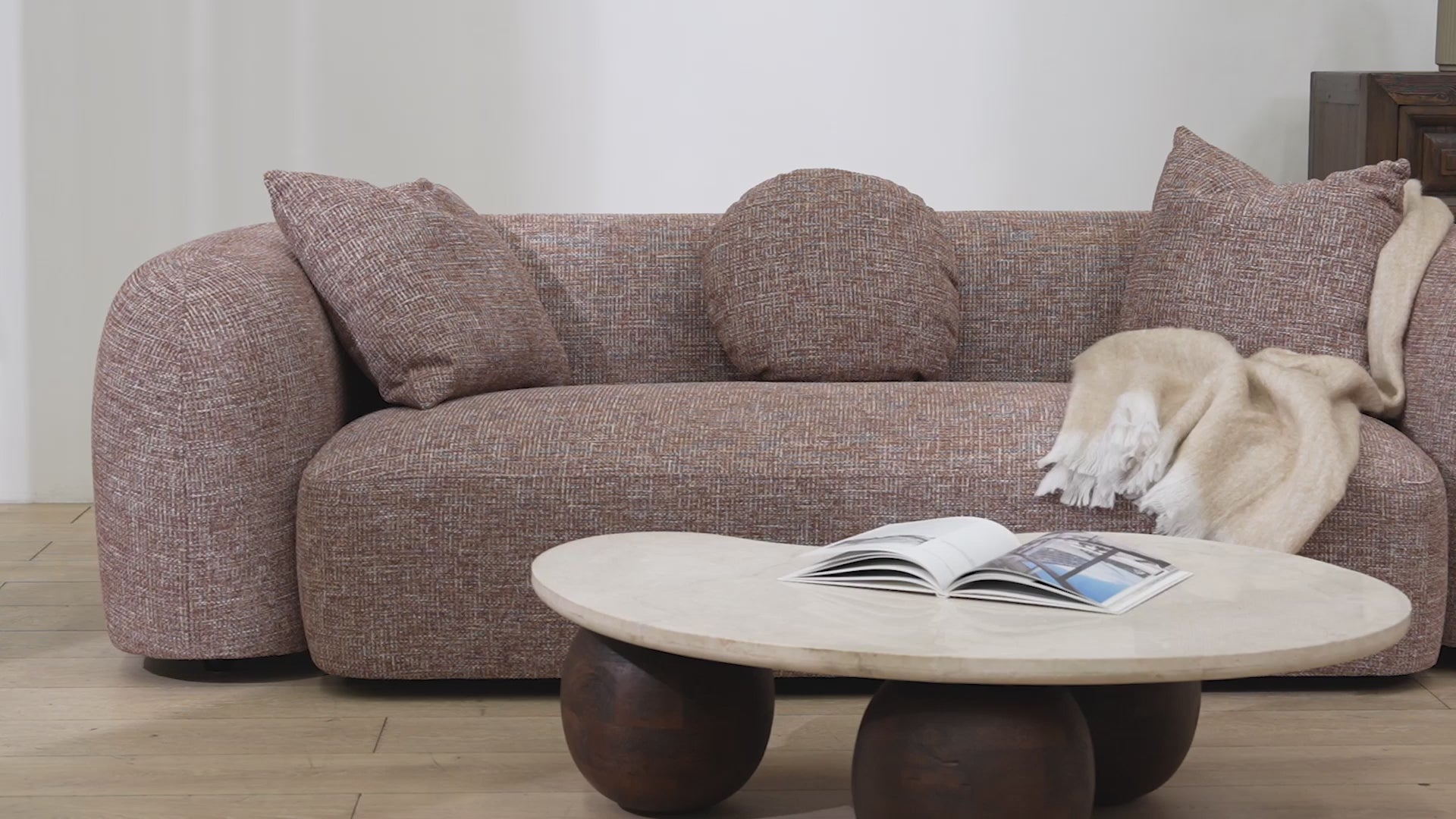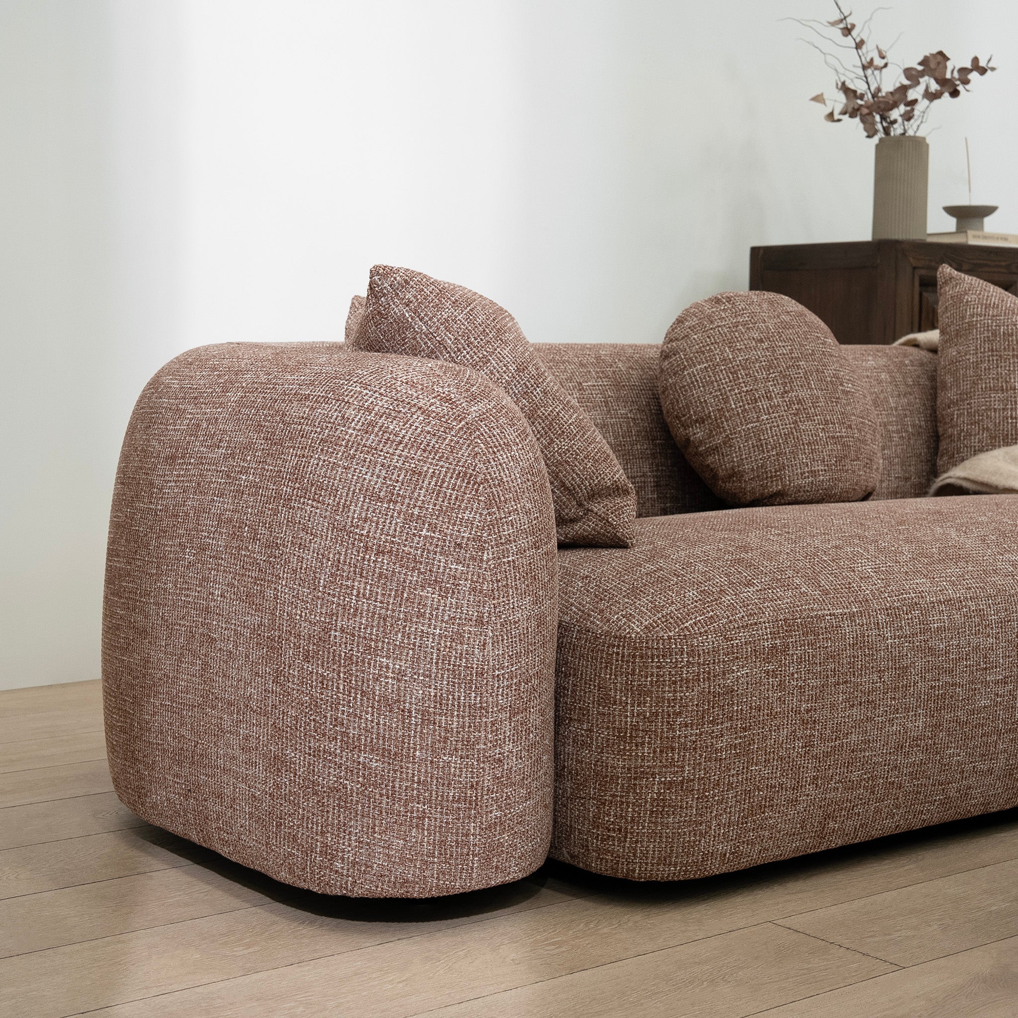 Bringing a relaxed, contemporary softness to the living room, the Justus 3 Seater Sofa in Santiago Copper features a low, grounded silhouette shaped by fluid lines that feel welcoming and sculptural. Its calm presence encourages slow, comfortable living while maintaining a refined modern character.
