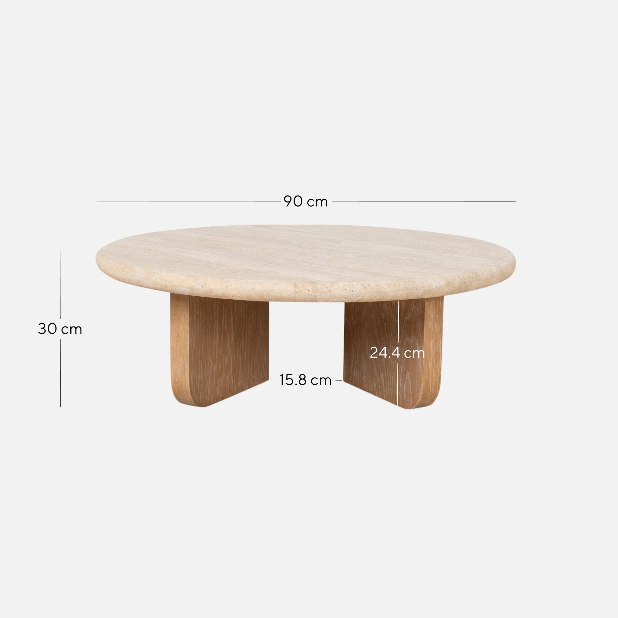 Kalin 90cm Round Travertine Coffee Table - Natural