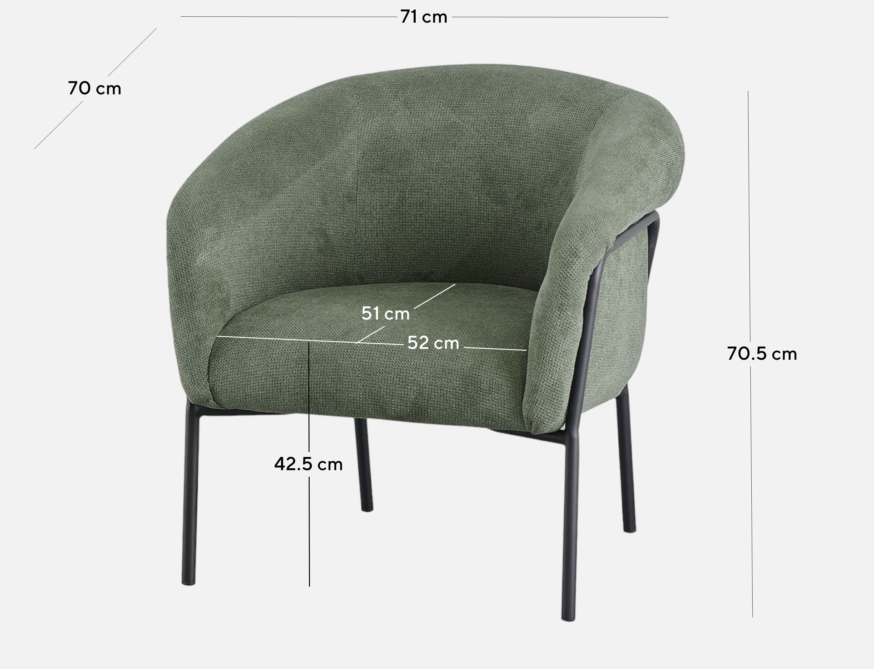 Overall: 71cm (W) x 70cm (D) x 70.5cm (H) Seat: 52cm (W) x 51cm (D) x 42.5cm (H)