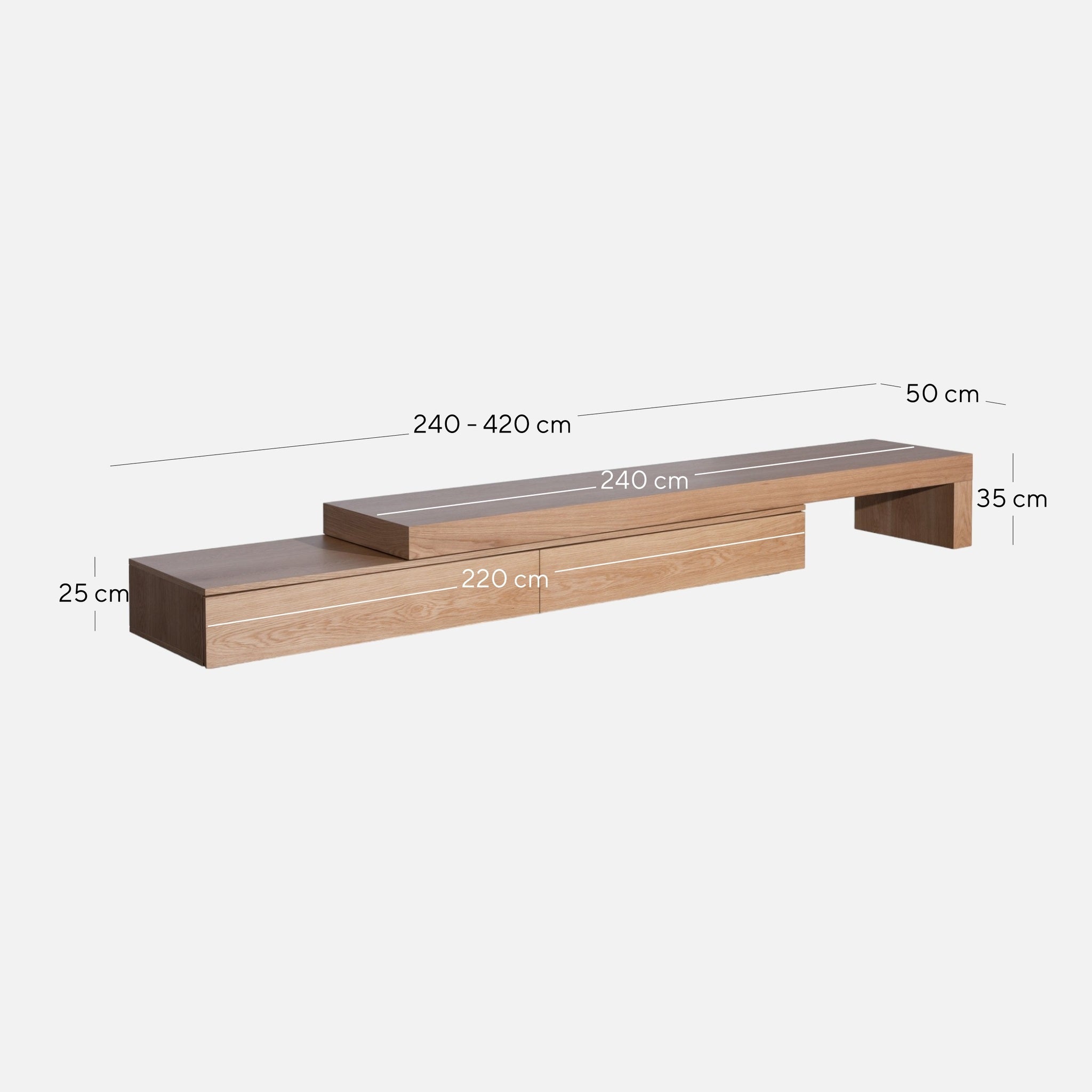 Overall: 240cm - 420cm (W) x 50cm (D) x 35cm (H) Extension Panel: 240cm (W) x 50cm (D) x 35cm (H) Drawer: 220cm (W) x 50cm (D) x 25cm (H)