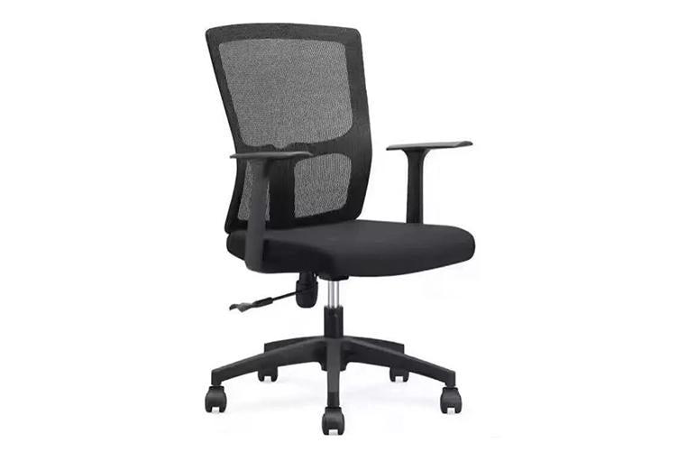 - Breathable mesh back with adjustable lumbar support, adjustable height, and ratchet back